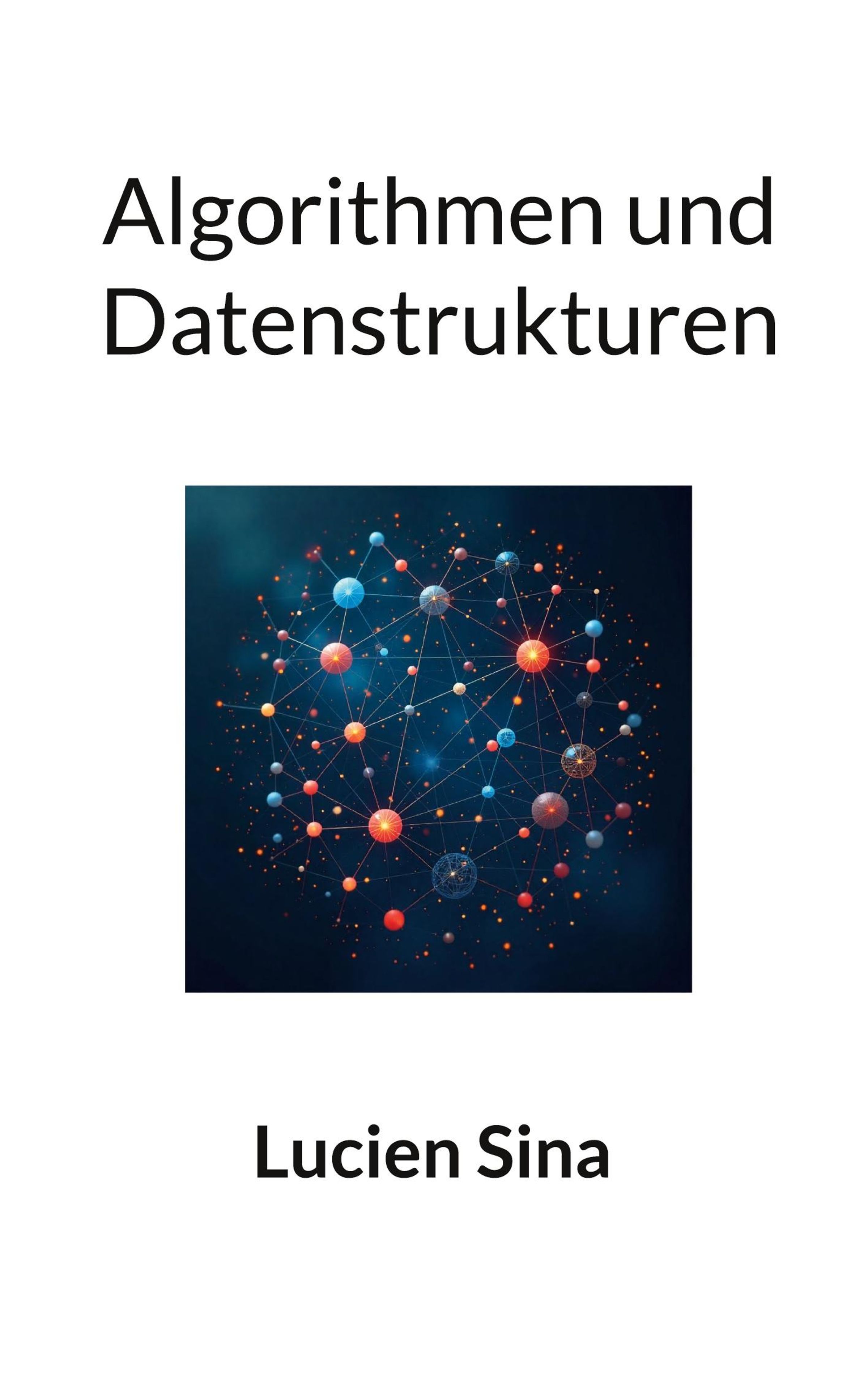 Text: "Algorithmen und Datenstrukturen" und "Lucien Sina". Illustration zeigt ein vernetztes Diagramm mit bunten Knoten., Buch