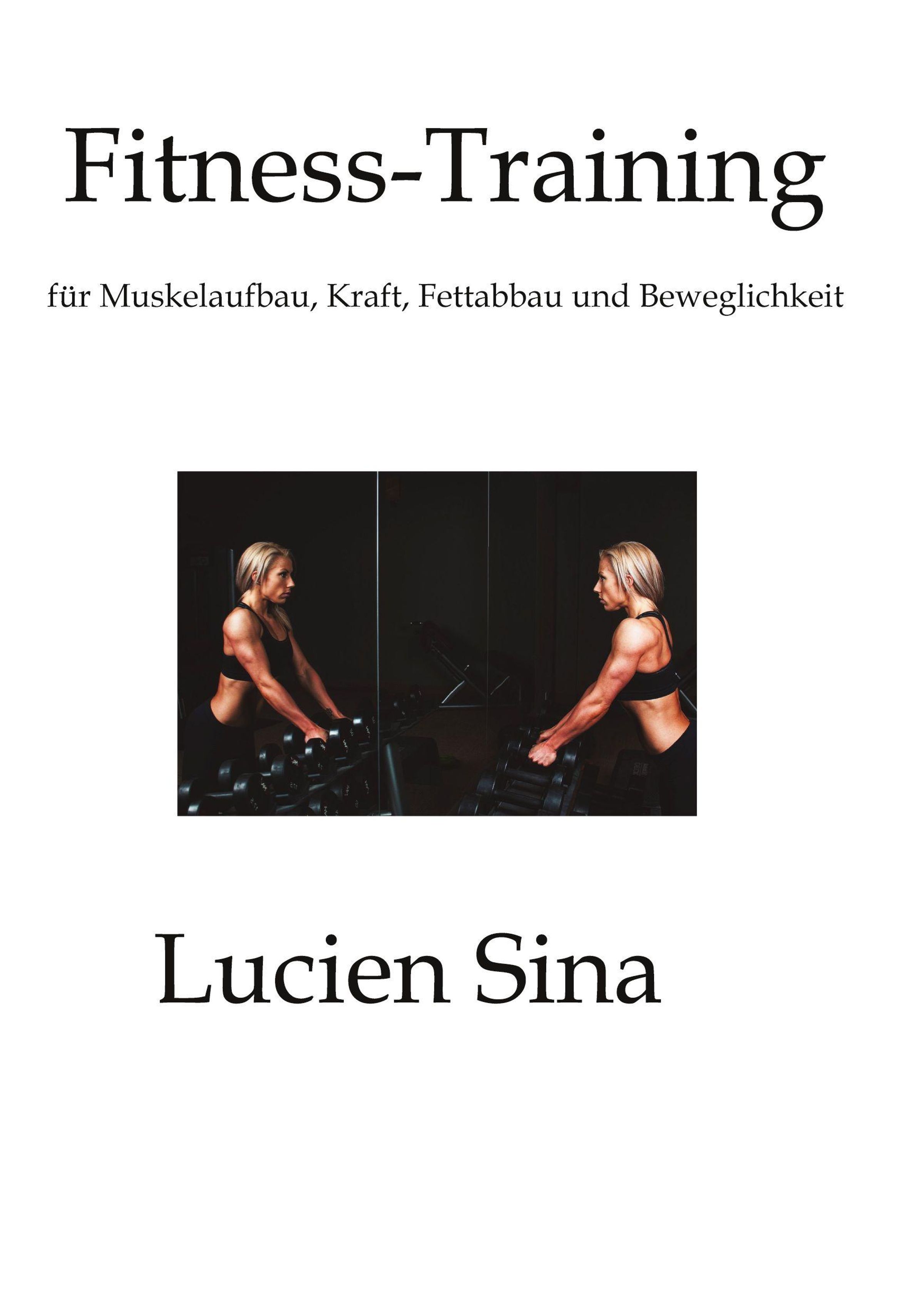 „Fitness-Training: für Muskelaufbau, Kraft, Fettabbau, Beweglichkeit.“ Unten Bild von Frau vor Hanteln. Darunter „Lucien Sina“., Buch