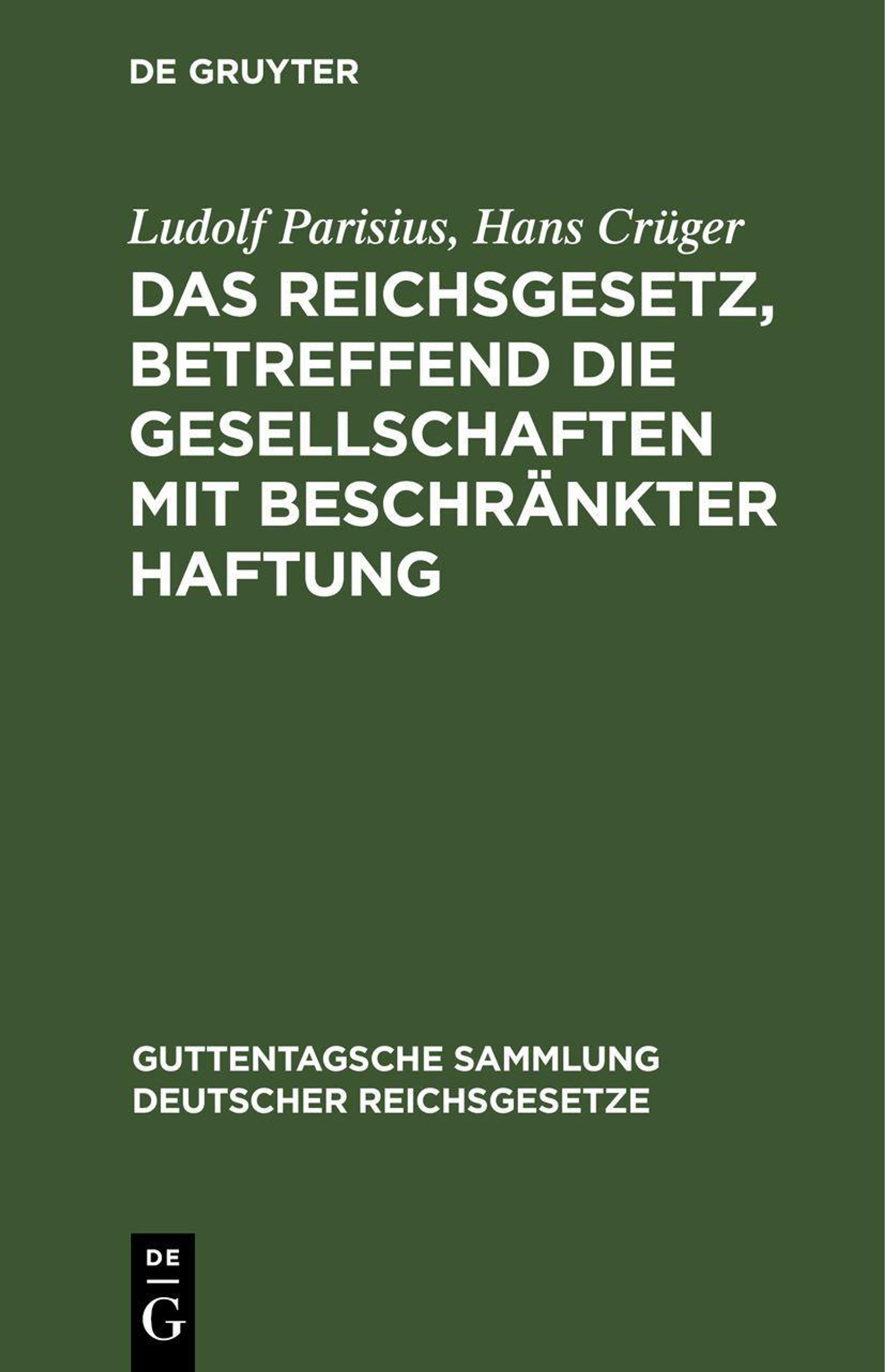 Hans Crüger: Das Reichsgesetz, betreffend die Gesellschaften mit beschränkter Haftung, Gebunden