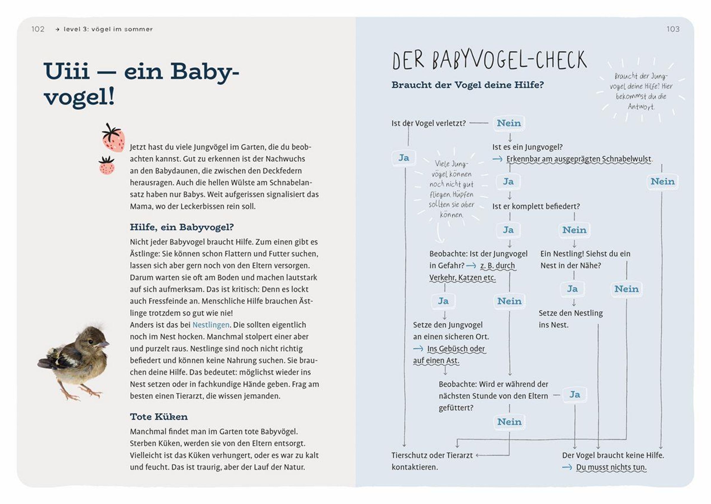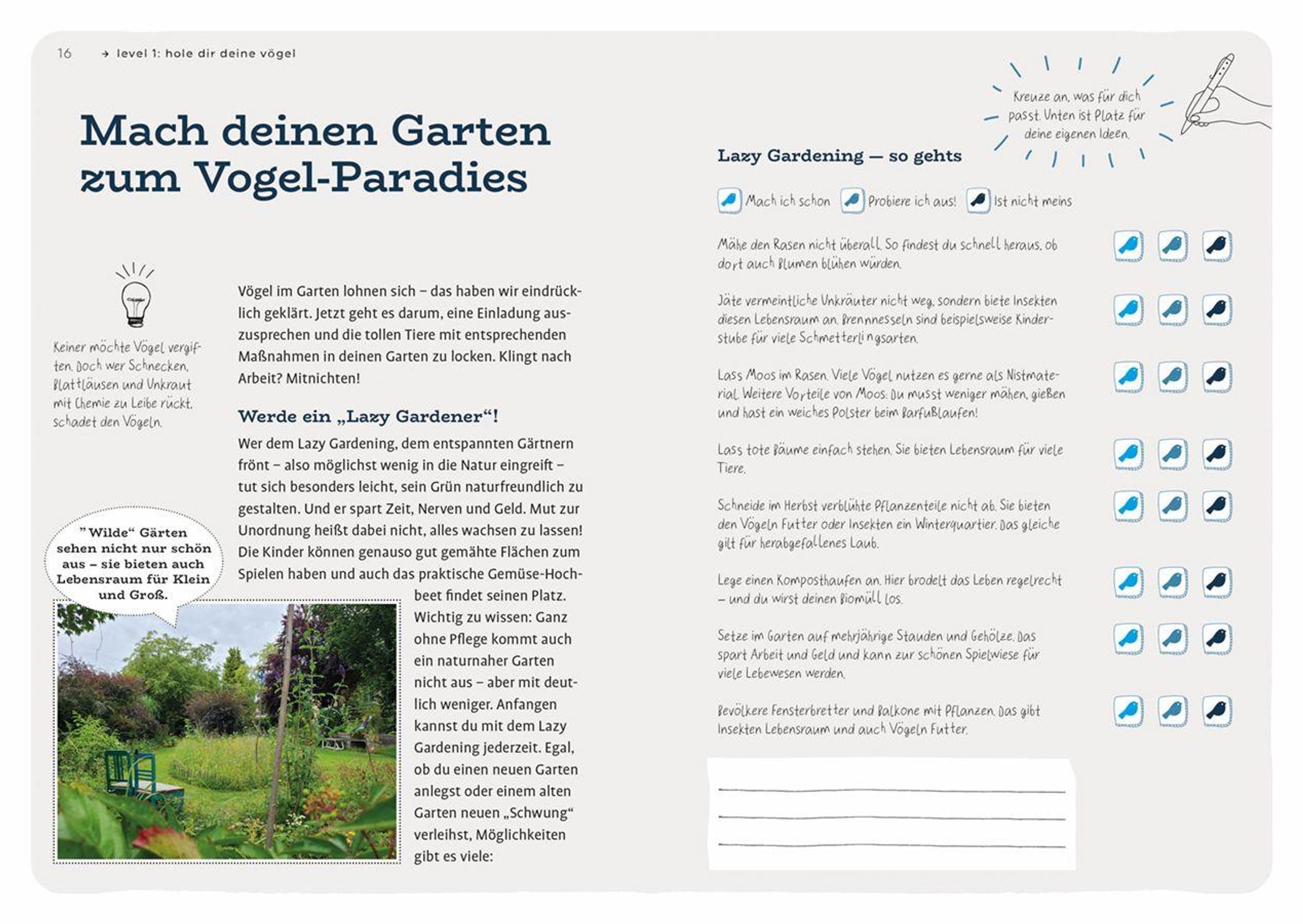 Gartenvögel machen dein Leben bunter. Für einen motivierenden Einstieg in die faszinierende Welt der kleinen Piepmätze ist dieser Guide der perfekte Begleiter! Entdecke, wie du dir Vögel in den Garten holst, ein Verwöhnprogramm startest und deine Vogelfreunde durchs Jahr begleitest. Lerne deine gefiederten Gäste besser kennen und sogar allein am Gesang zu unterscheiden. Über drei Level kannst du das eigene Wissen vertiefen, Erfahrungen erweitern und zum Gartenvogel-Profi aufsteigen! Mood-Tracker, Malschule, Rätselspaß und digitale Extras animieren, gleich aktiv zu werden und machen Lust auf mehr. Mach auch du deinen Garten zum Vogel-Paradies!