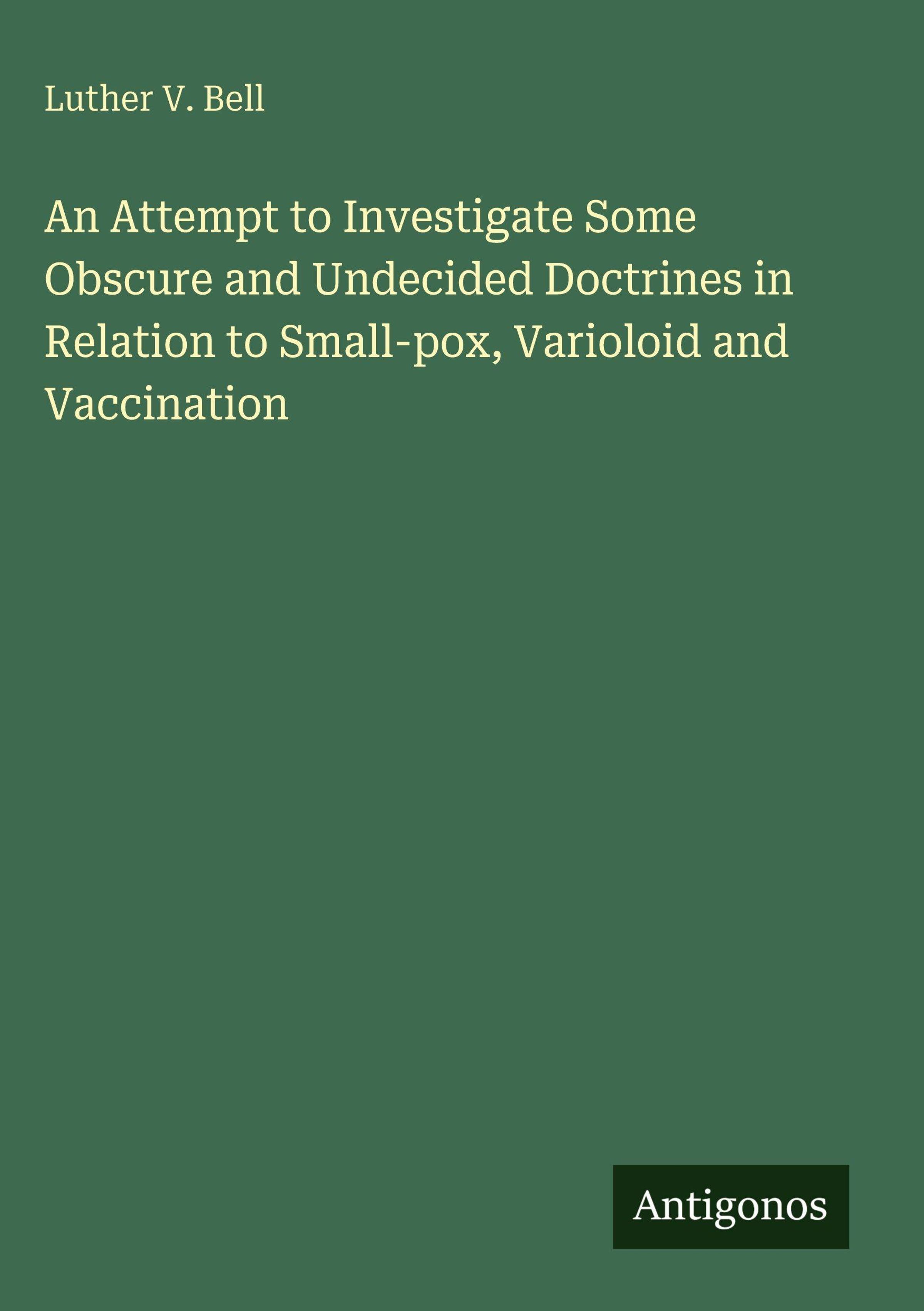 Luther V. Bell: An Attempt to Investigate Some Obscure and Undecided Doctrines in Relation to Small-pox,..., Gebunden