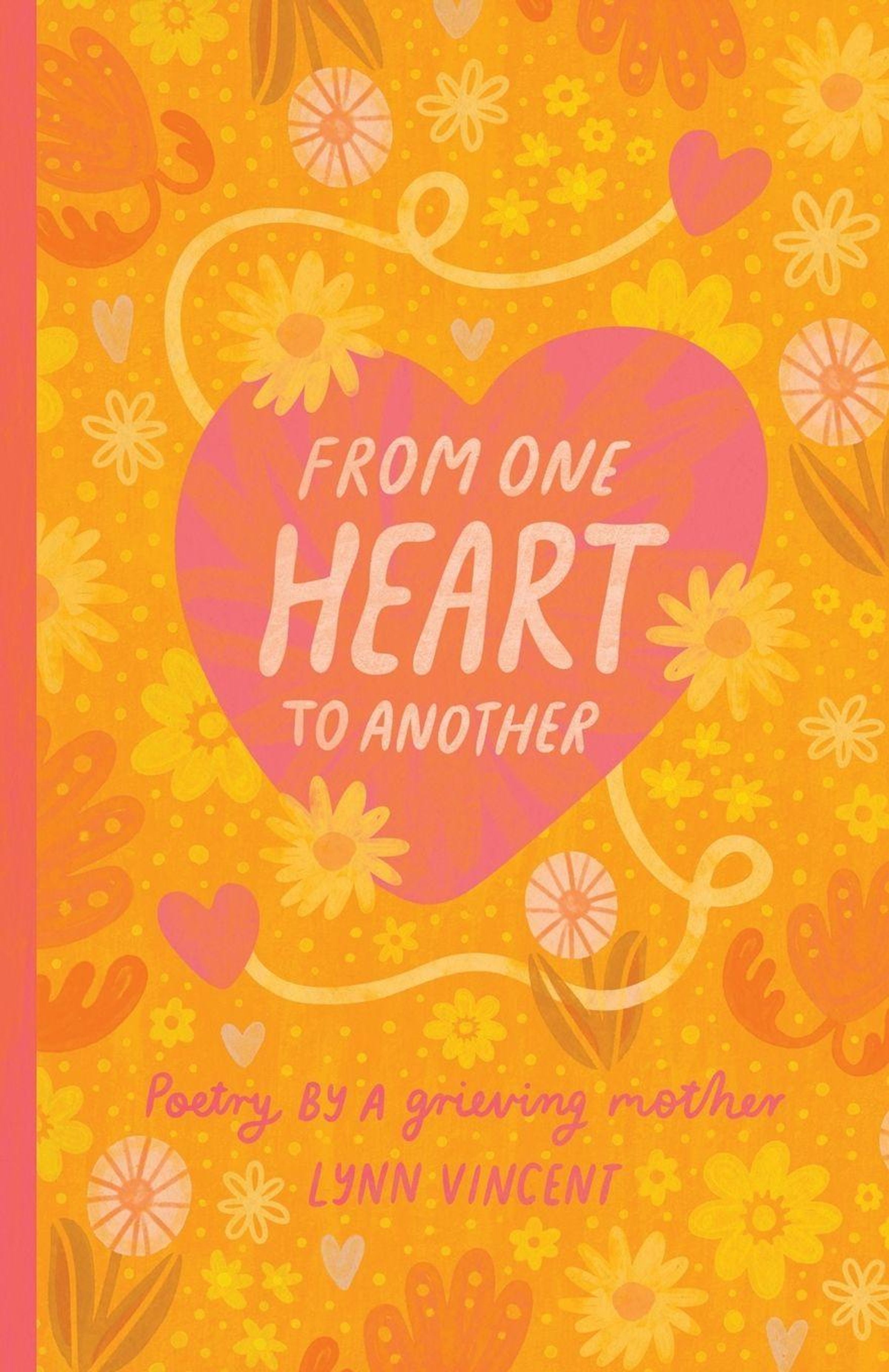 „FROM ONE HEART TO ANOTHER“ in einem rosa Herz. Gelber Hintergrund mit Blumen und Herzen. автор: LYNN VINCENT., Buch