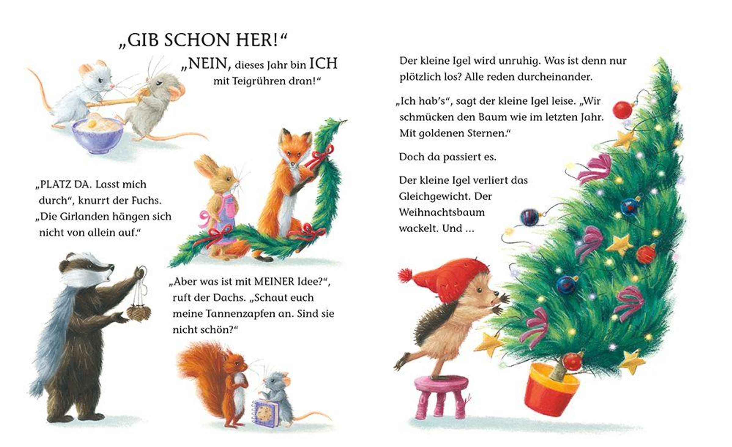 Der kleine Igel und seine Freunde bereiten sich auf das schönste Fest des Jahres vor - da geht plötzlich alles schief! Bei einem Streit fällt der Weihnachtsbaum um und verliert seine Nadeln. Die Suche nach einem schönen neuen Baum gestaltet sich schwieriger als gedacht.