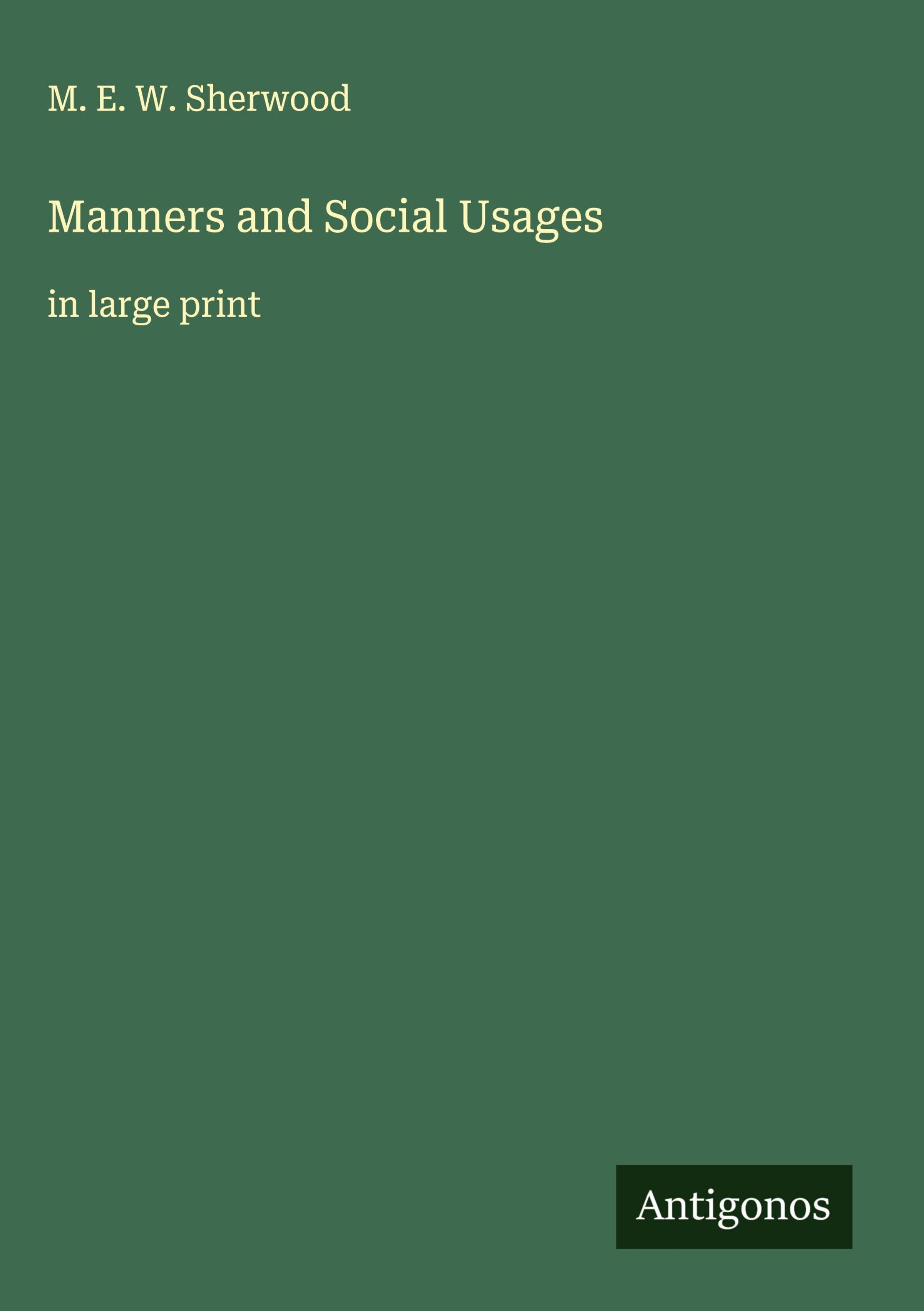 M. E. W. Sherwood: Manners and Social Usages, Gebunden