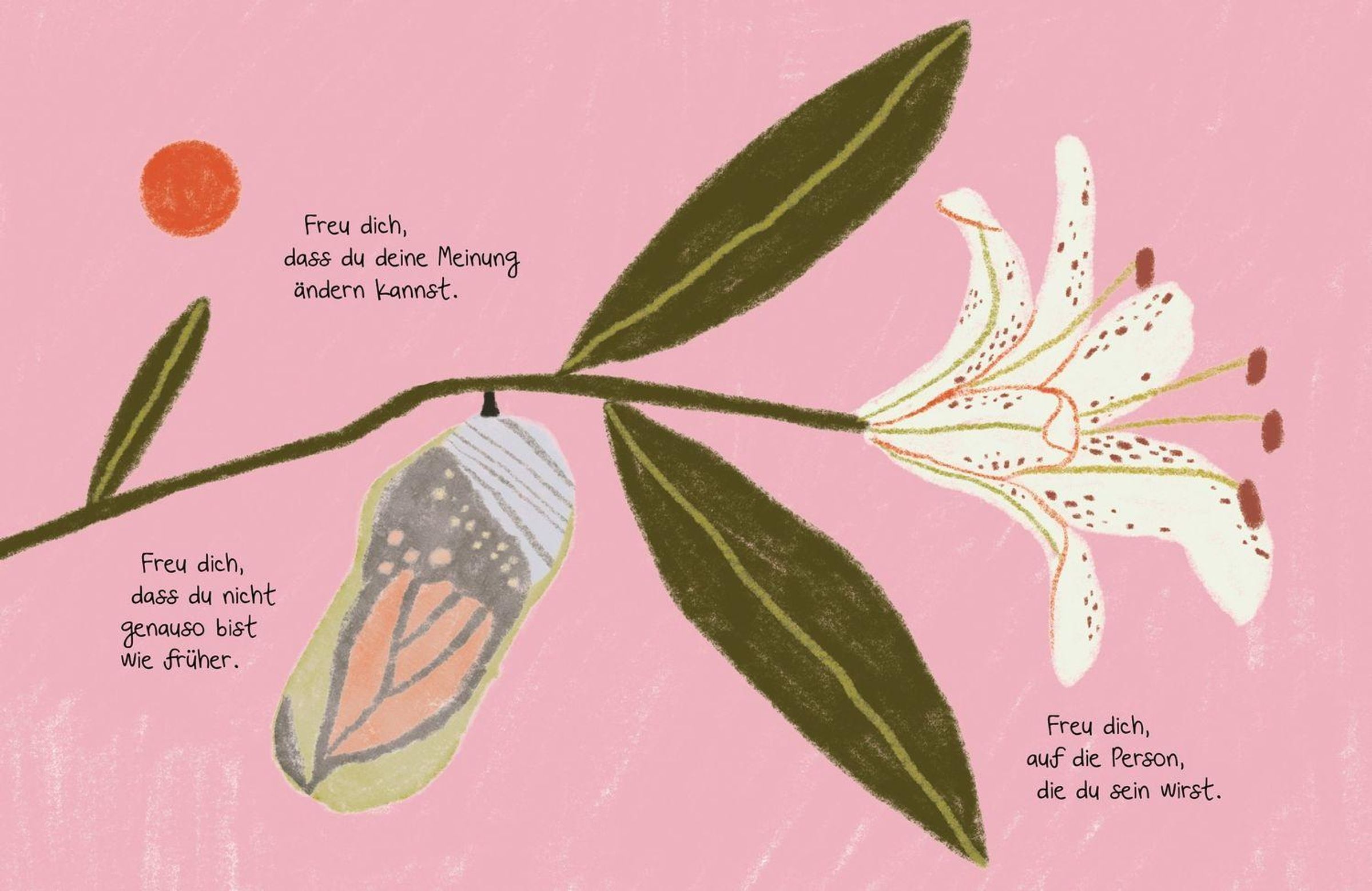 "LOVE WHO YOU ARE" in der Mitte. M. H. Clark oben rechts. Illustration mit bunten Blumen auf rosa Hintergrund., Buch