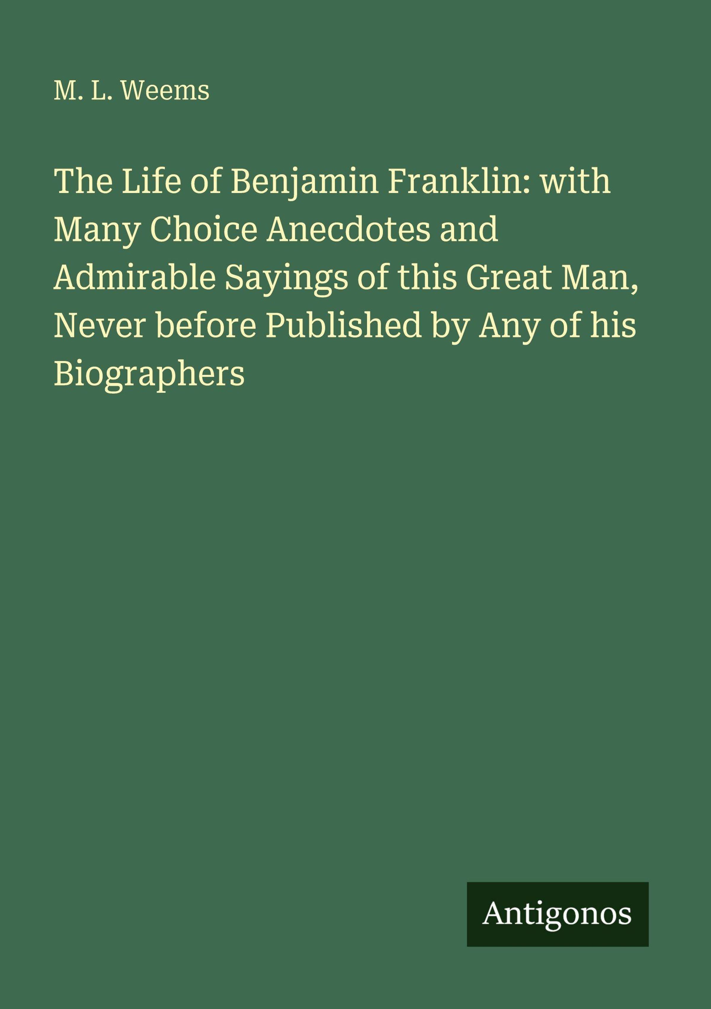 M. L. Weems: The Life of Benjamin Franklin: with Many Choice Anecdotes and Admirable Sayings of this Great Man,..., Kartoniert / Broschiert