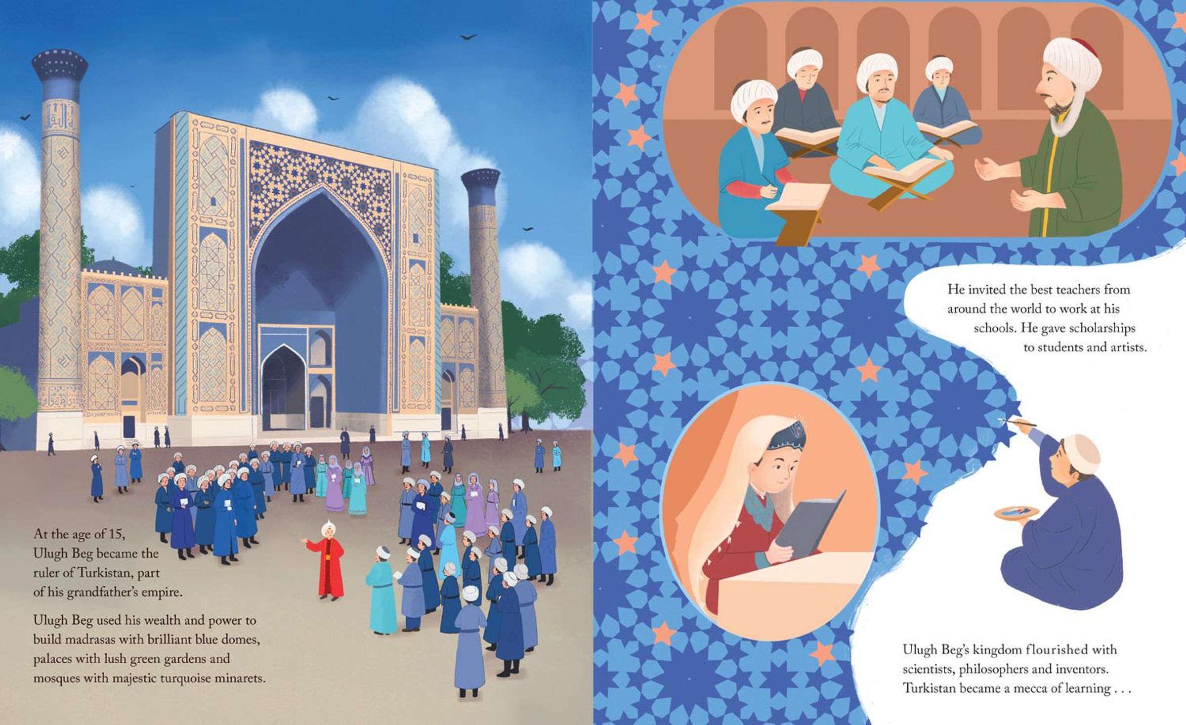 Meet Ulugh Beg - a little prince from the Timurid Empire, with a BIG sense of curiosity. Discover how he explored the world around him and grew up to become an astronomer, scientist, mathematician and much more!