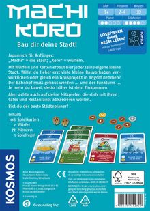 > Der Spiele-Hit aus Japan: MACHI KORO - Das schnelle Städtebauspiel mit Würfeln und Karten! > Nominiert zum "Spiel des Jahres 2015". > Preisgekrönt und zum Immer-wieder-spielen. Ausgezeichnet mit dem "Goldenen SpielePod 2014" und "À la Carte 2015"-Preis für das beste Kartenspiel. > Auf der Auswahlliste für die Auszeichnung "Graf Ludo 2015" für die beste Familienspiel-Grafik. > Für 2-4 Spieler: Wer ist in der Stadtplanung am cleversten, investiert am besten und erbaut zuerst seine Großprojekte? > Ein Kartenspiel mit Würfeln für die ganze Familie ab 8 Jahren. > Im handlichen Format für unterwegs, auf Reisen, als Mitbringsel oder Geschenk. > Mit kostenloser KOSMOS-Erklär-App fürs Spielen ohne Regellesen - natürlich auch ohne spielbar. > Erweiterbar mit "MACHI KORO - Großstadt-Erweiterung" mit neuen Großprojekten und Unternehmen für einen noch abwechslungsreicheren Städtebau..