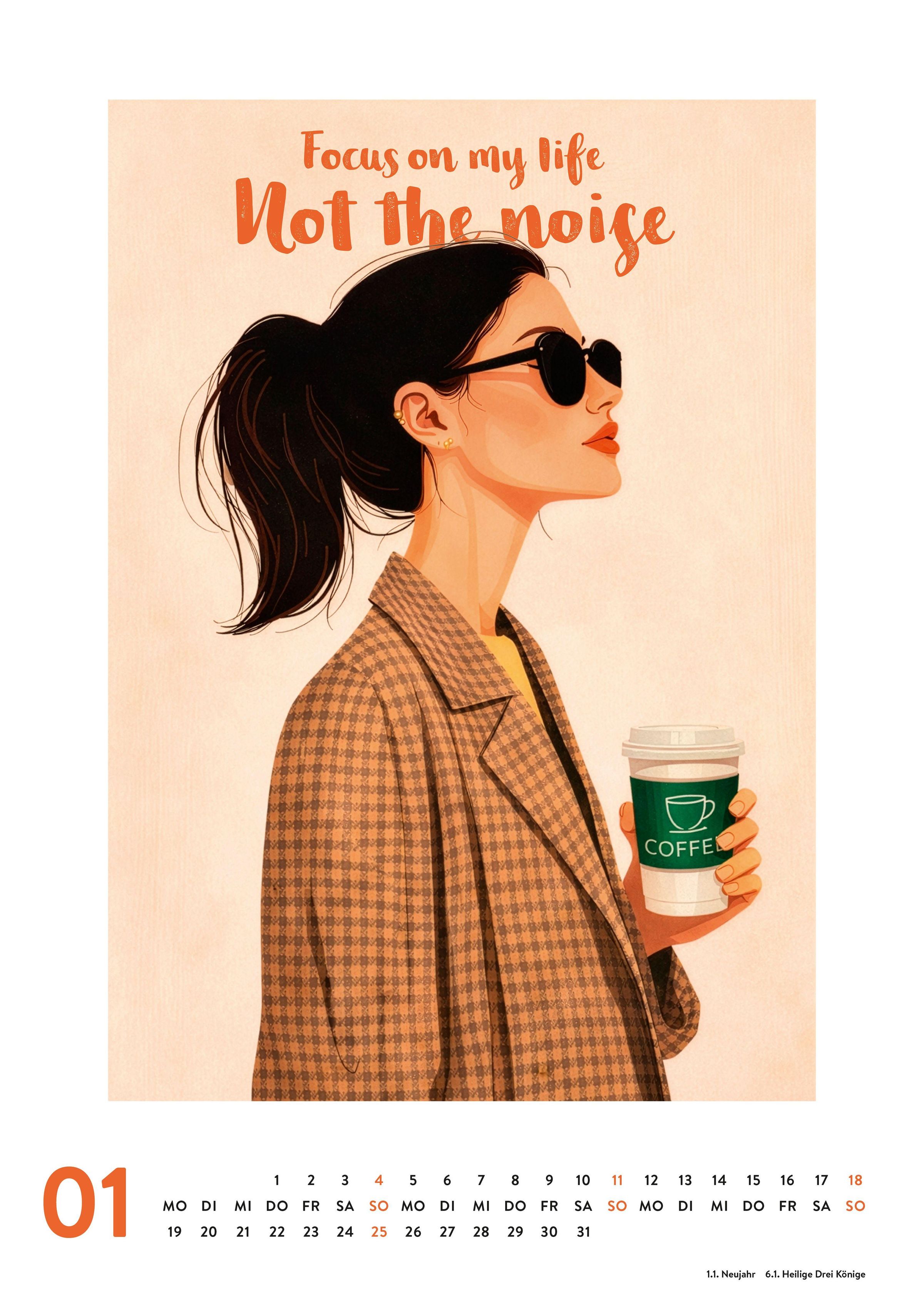 Ob für den eigenen Wohnraum, den Arbeitsplatz oder als besondere Geschenkidee: „Starke Frauen 2027" verbindet stilvolle Illustration mit motivierenden Botschaften und bringt Monat für Monat Inspiration, Haltung und positive Energie an die Wand.