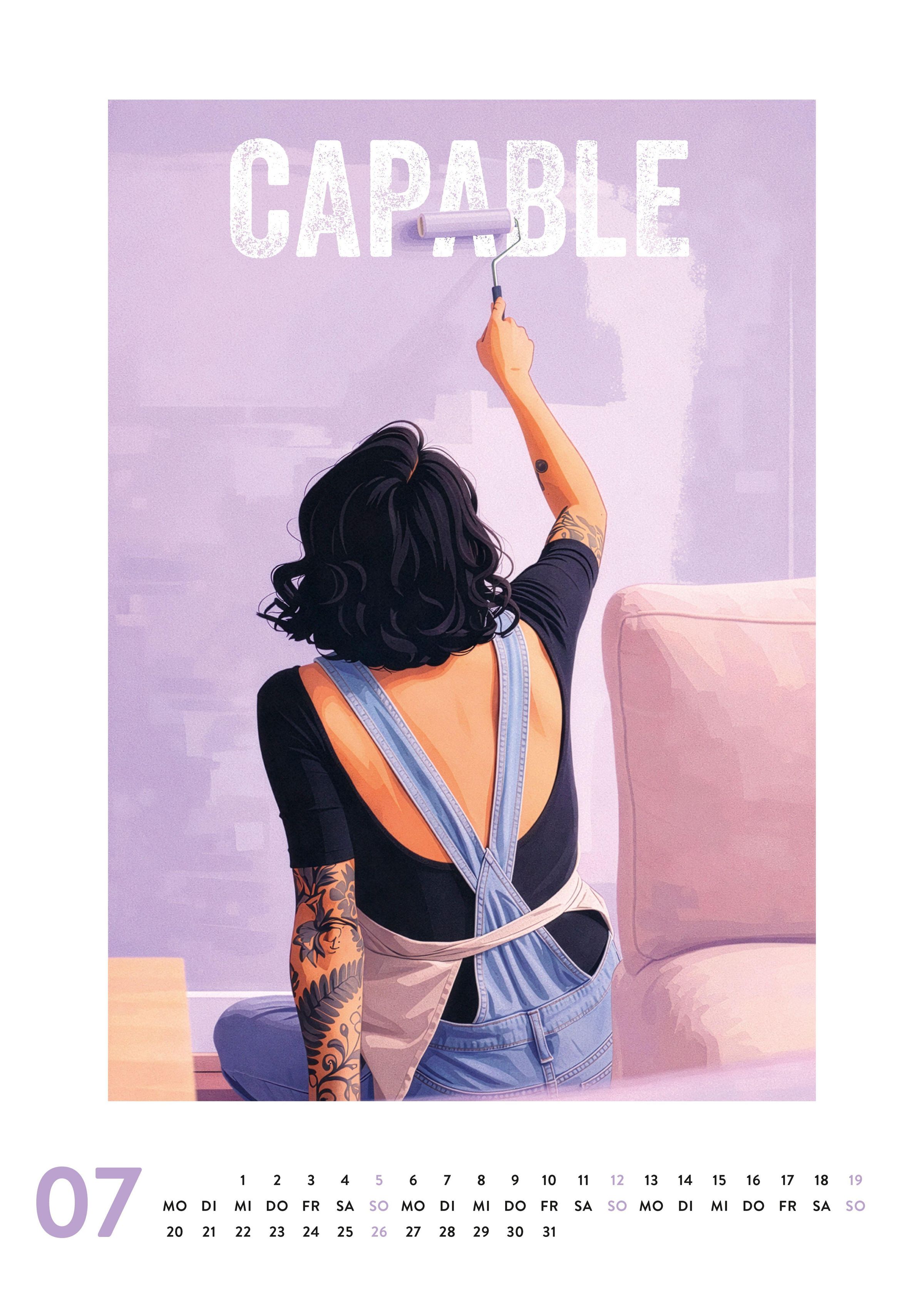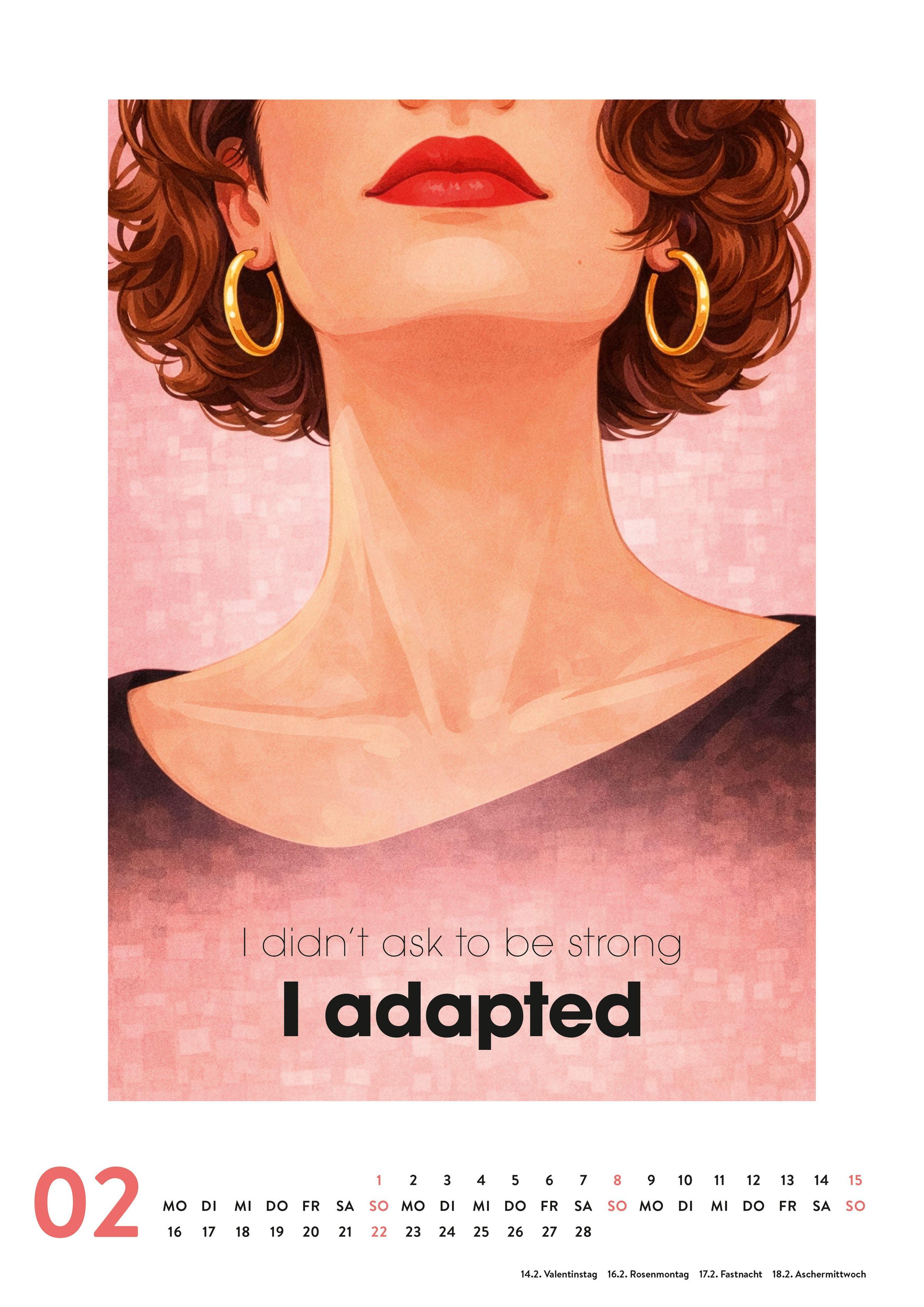 12 ausdrucksstarke Illustrationen: Jeden Monat ein neues Motiv voller Stärke, Selbstbewusstsein und weiblicher Energie.