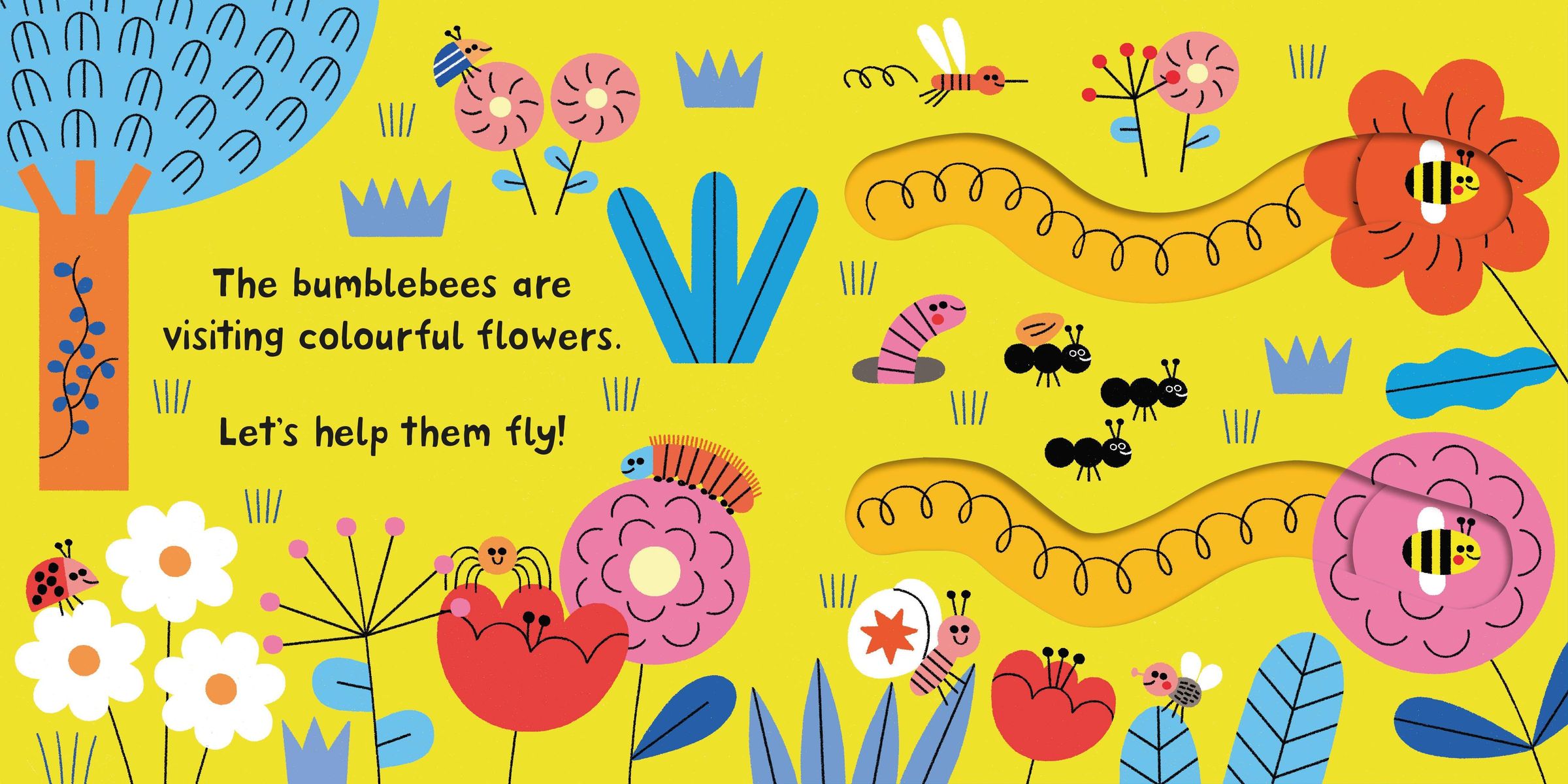 Tilt the book to make the colourful bugs race across the page with this interactive slider book. Are you ready to join in the fun? Ready . . . steady . . . RACE!