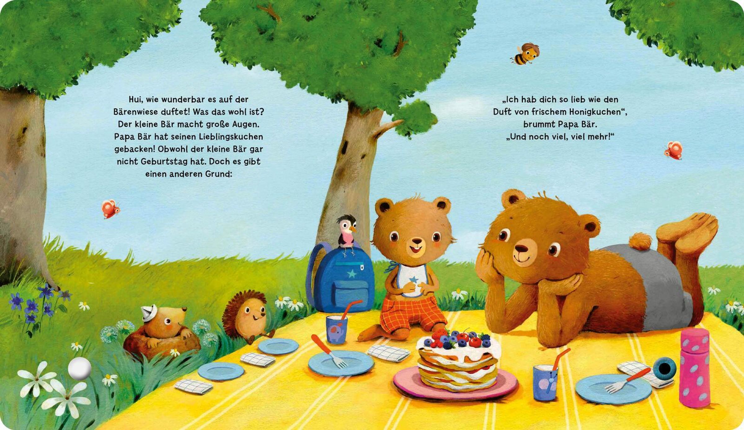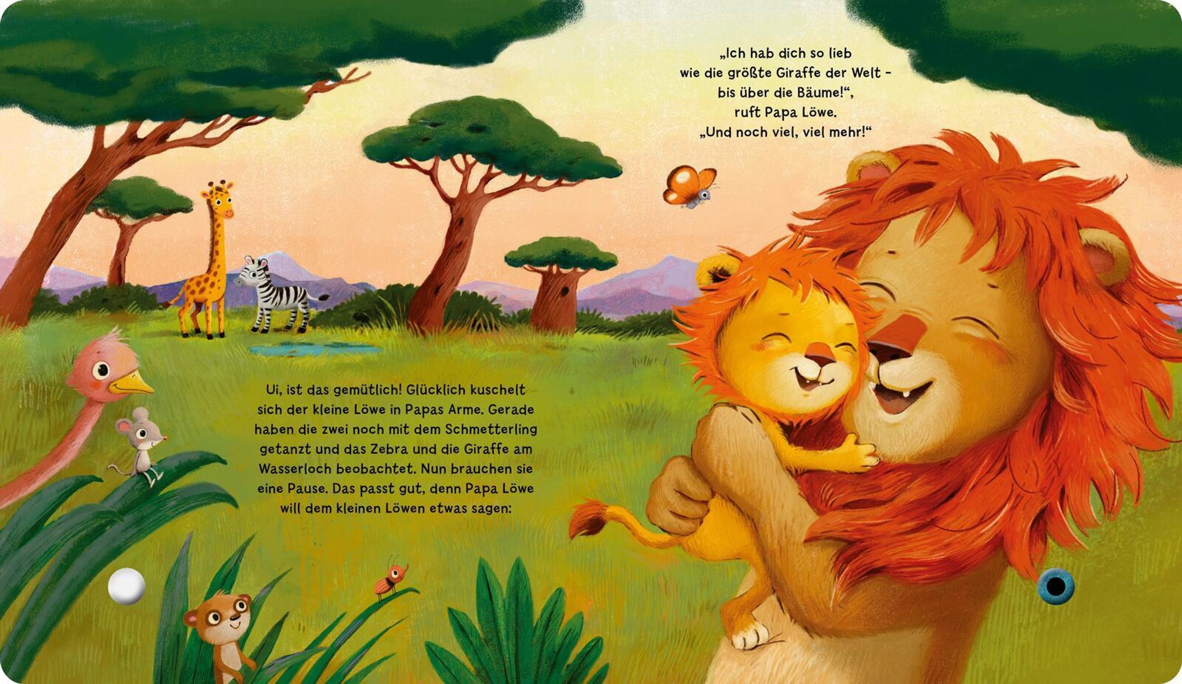 Wenn Papa Bär Honigkuchen backt oder Papa Löwe mit dem kleinen Löwen durch die Savanne tanzt, kommt ganz viel Liebe ins Spiel. Vier kleine Geschichten erzählen von den großen Gefühlen im Familienalltag. Und am Ende kann eine ganz persönliche Liebeserklärung direkt ins Buch gesprochen werden, mit der vertrauten Stimme von Mama, Papa oder einem Lieblingsmenschen. Ideal zum Trösten, Einschlafen oder einfach als liebevoller Gruß.