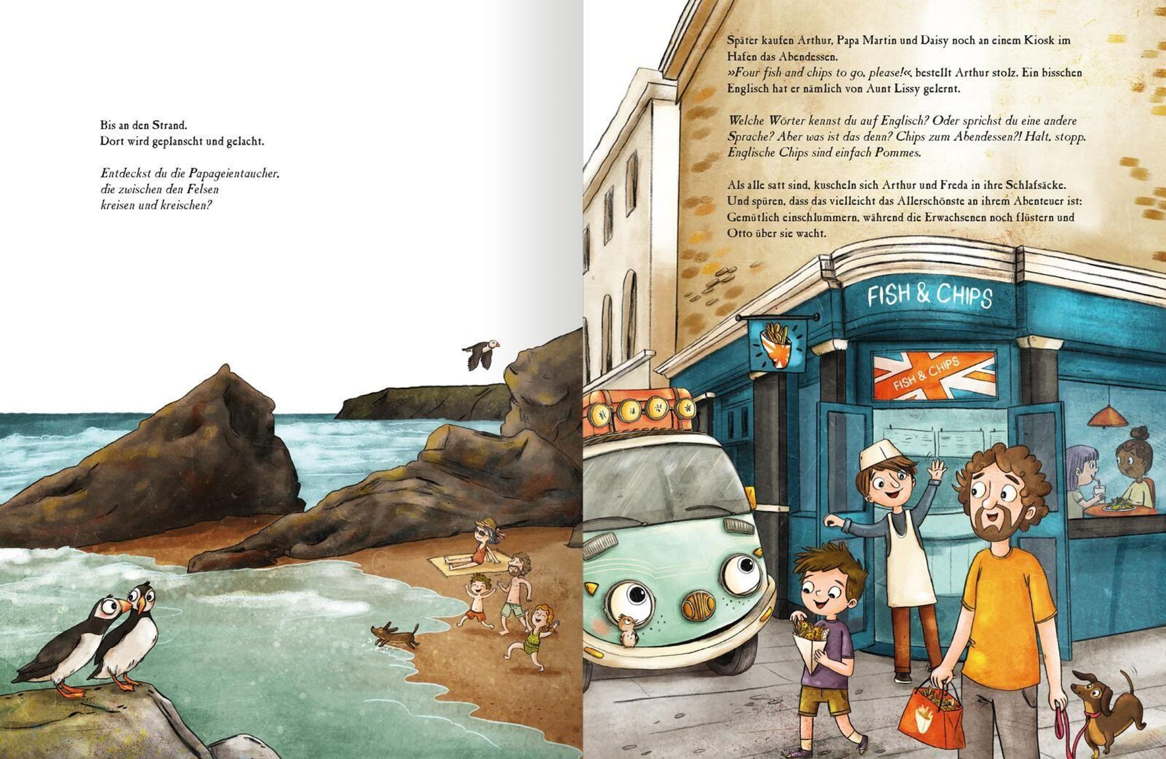 Detektivspielen mit Sherlock Holmes in London, Campen auf den schönsten Küstenstellplätzen, Besuche von sagenhaften Burgruinen und Robin-Hood-Wäldern. Und natürlich dürfen die Queen, Teatime, Fish and Chips und die Beatles nicht fehlen. Bis es am Ende wieder heißt: " See you later, Otto-gater."