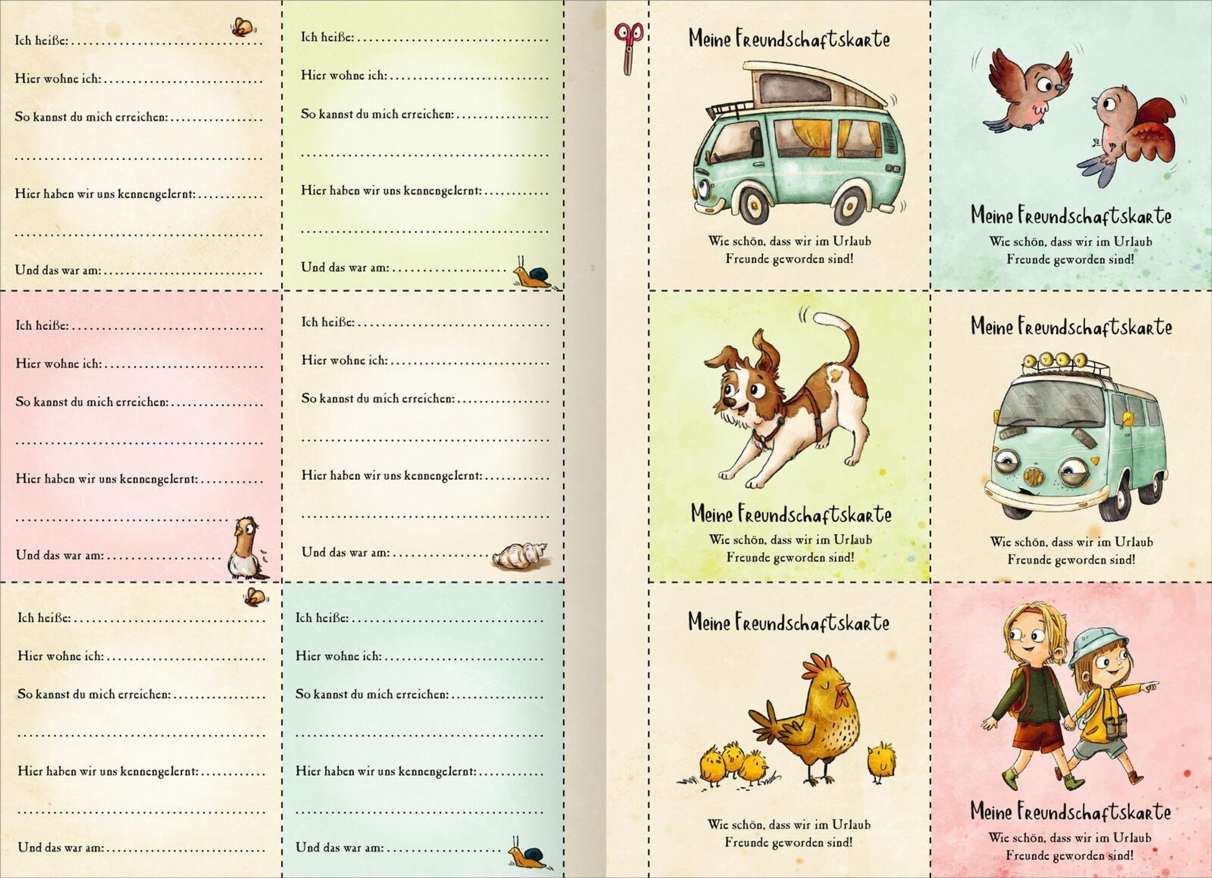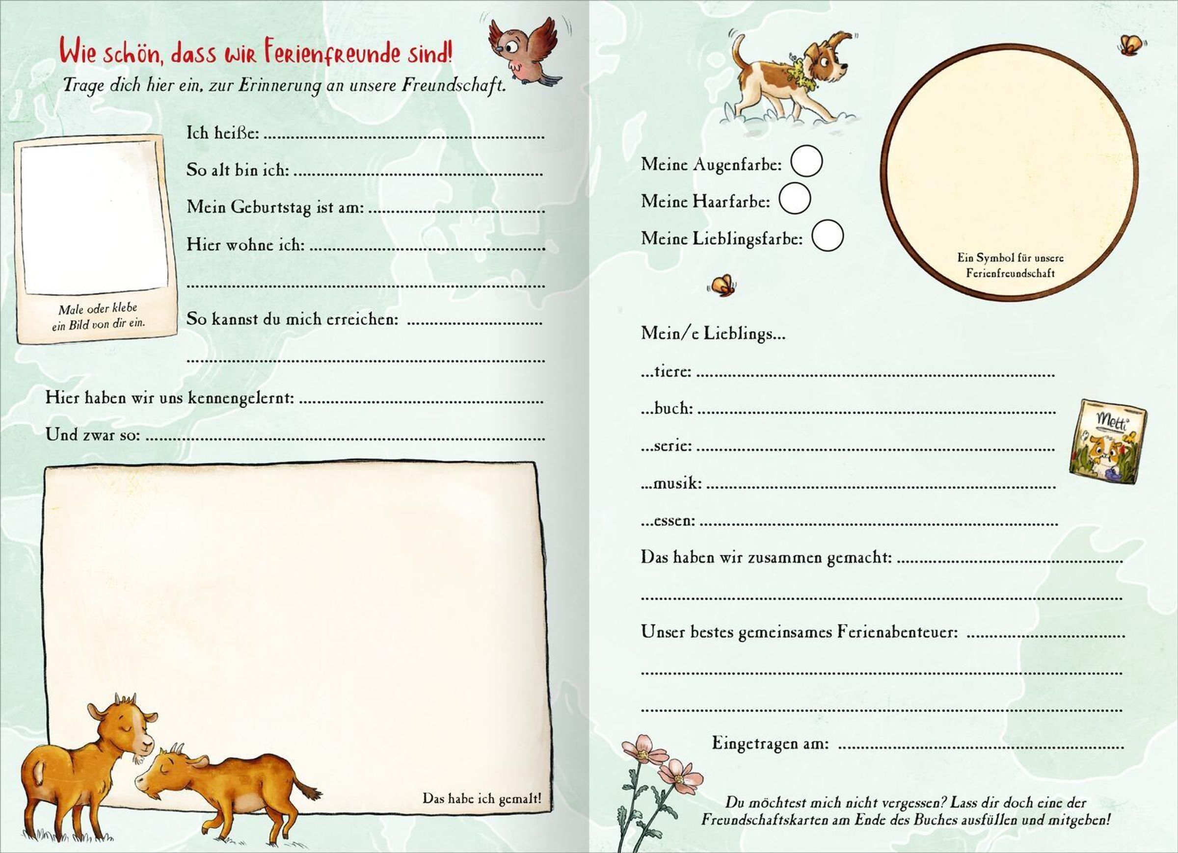 - **Deine Ferienfreunde:**Alle Freundinnen und Freunde, die du auf Reisen kennenlernst, können sich hier eintragen und du kannst ihnen auch ein Freundschaftskärtchen von dir mitgeben
