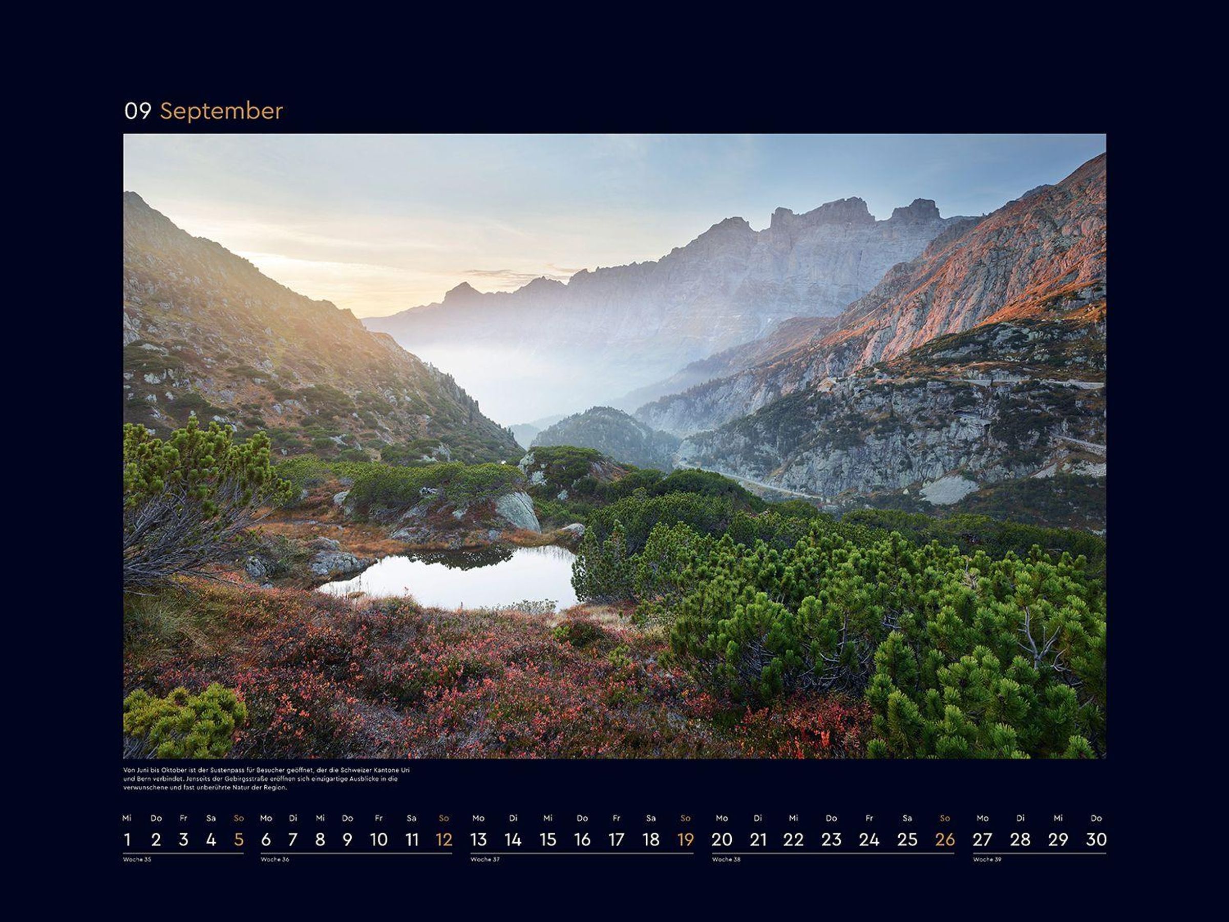 Monat für Monat wartet ein bildstarkes Highlight auf Entdeckung, und ein ansprechendes Kalendarium sorgt für optimalen Nutzen. Die mattschwarzen Rahmen bilden einen starken Kontrast zu den brillanten Fotografien.