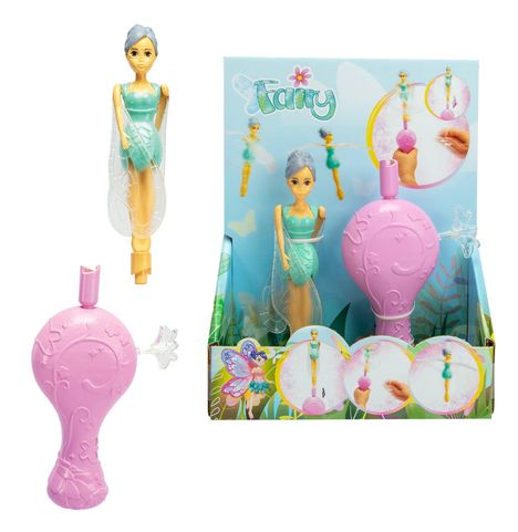 buntbedruckte fliegende Fee, weiche bewegliche Flügel, glow in the dark, Starter mit Seilzug, L: 14cm, TB, 3J+
