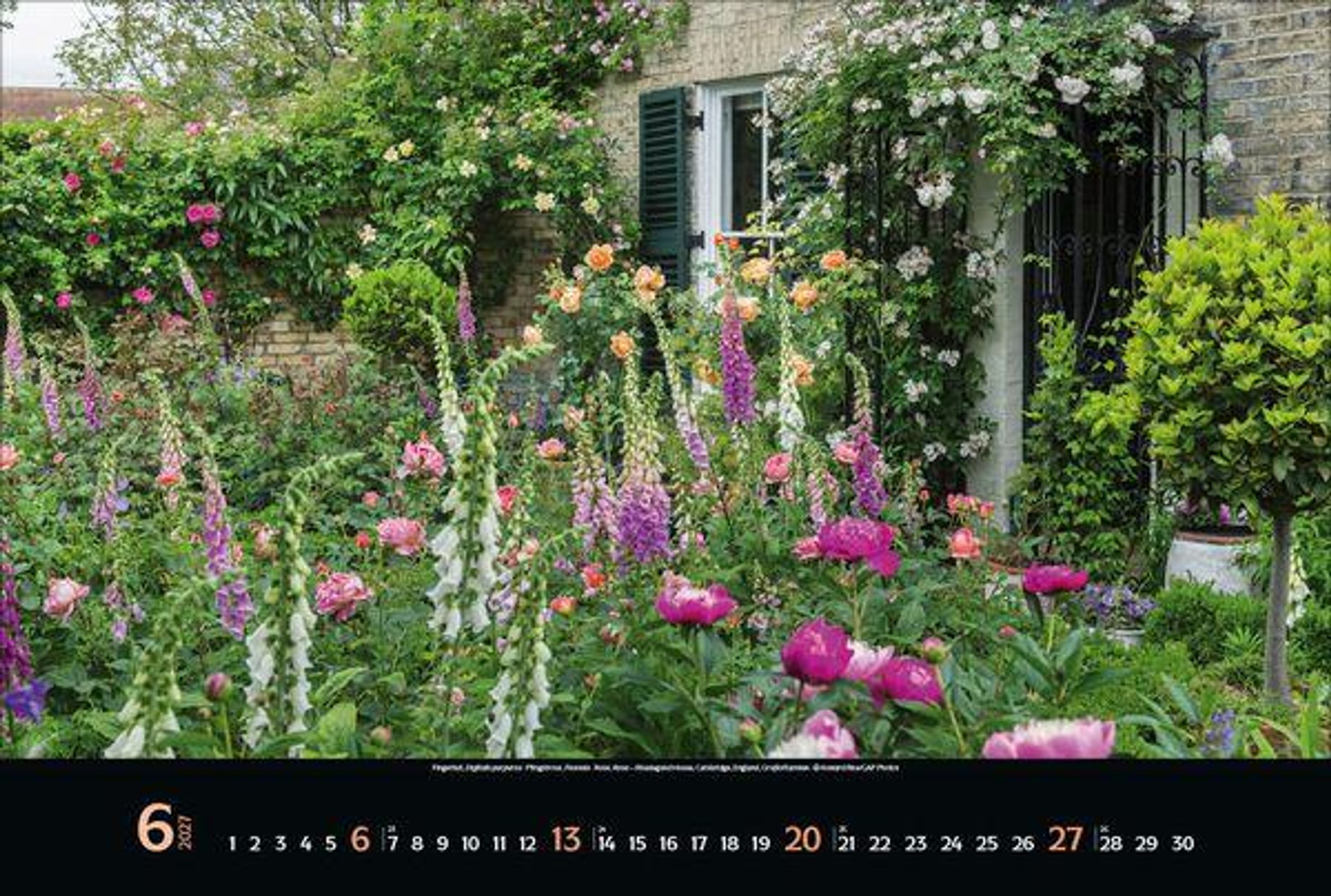 - Großer Foto-Wandkalender mit Bildern von verwunschenen Gärten. Edler schwarzer Hintergrund. PhotoArt Panorama Querformat: 58x39 cm.