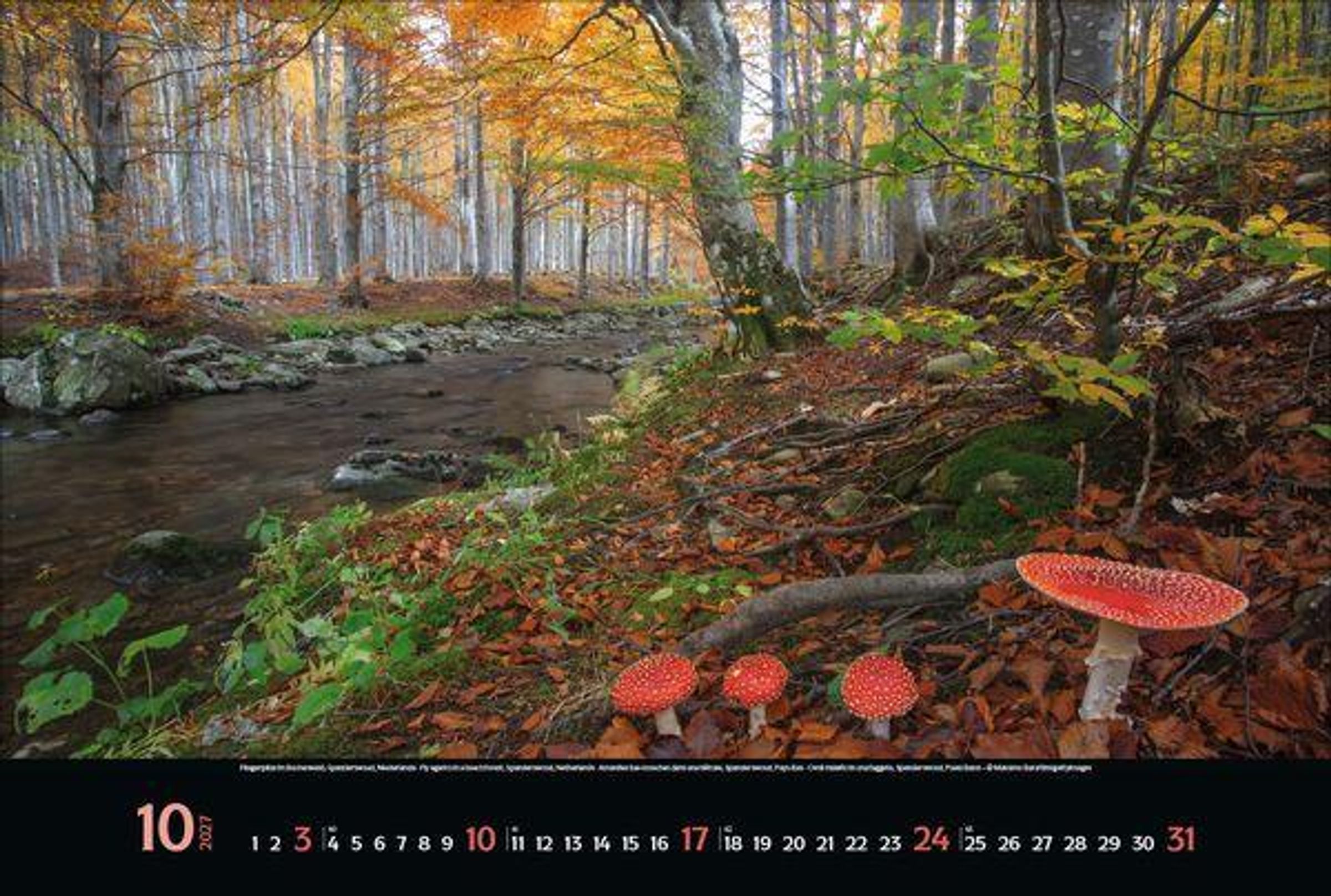 - Großer Foto-Wandkalender mit Bildern aus bunten Wäldern. Edler schwarzer Hintergrund. PhotoArt Panorama Querformat: 58x39 cm.