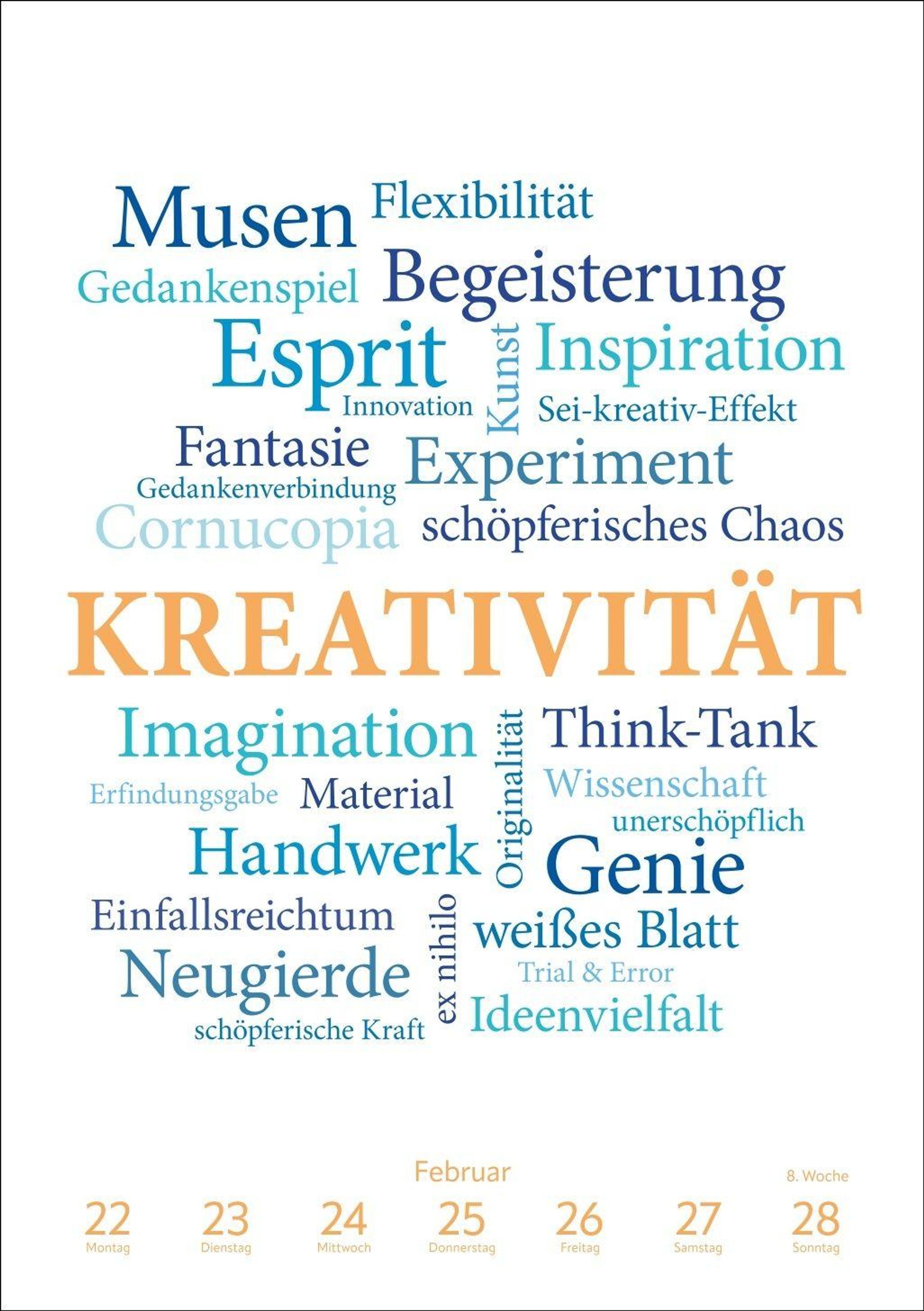 - Mit Worten auf Gedankenreise gehen. Wochenkalender mit Wortwolken, die inspirieren. Motivationskalender im Format 25 x 35,5 cm mit grafisch gestalteten Inspirationen