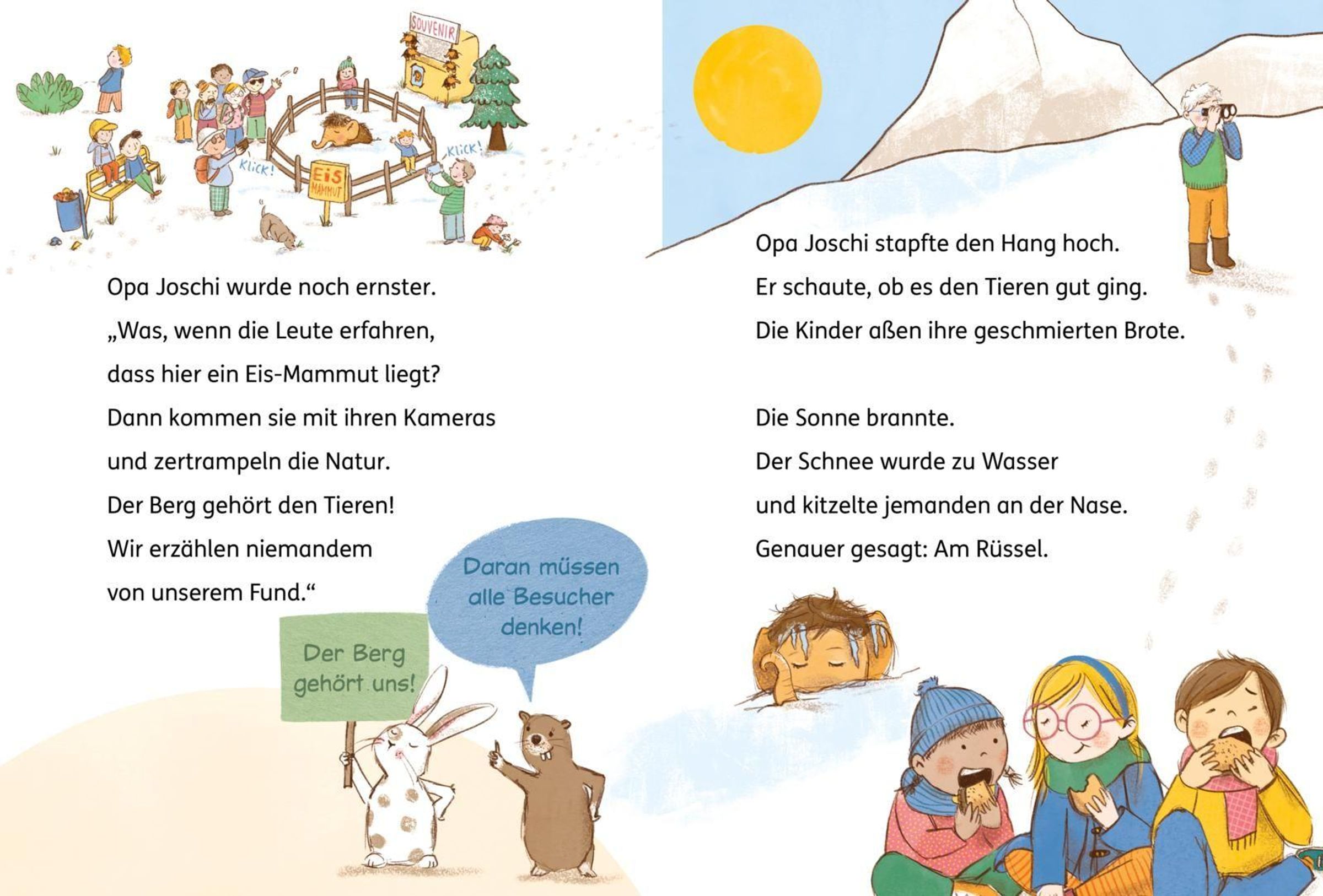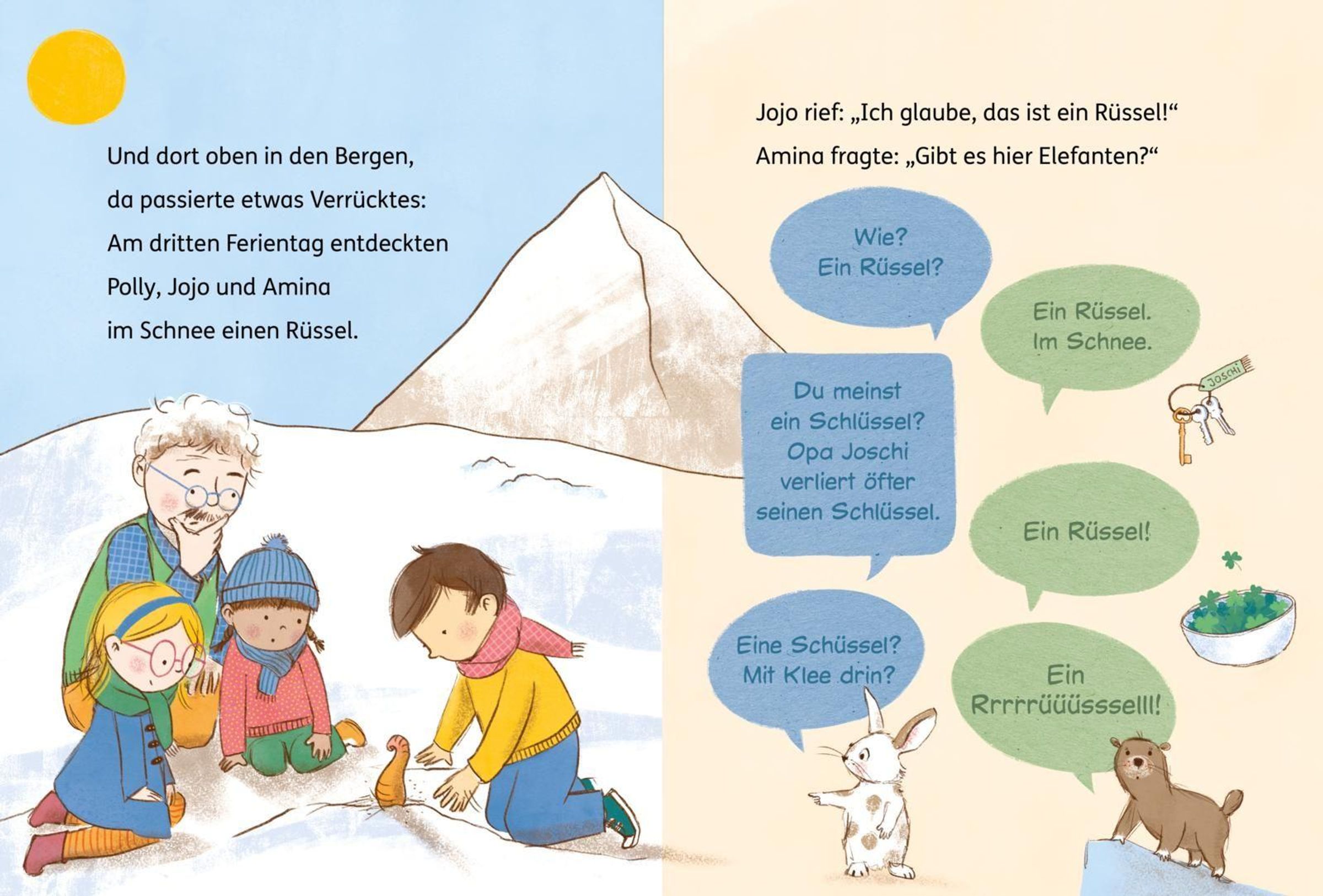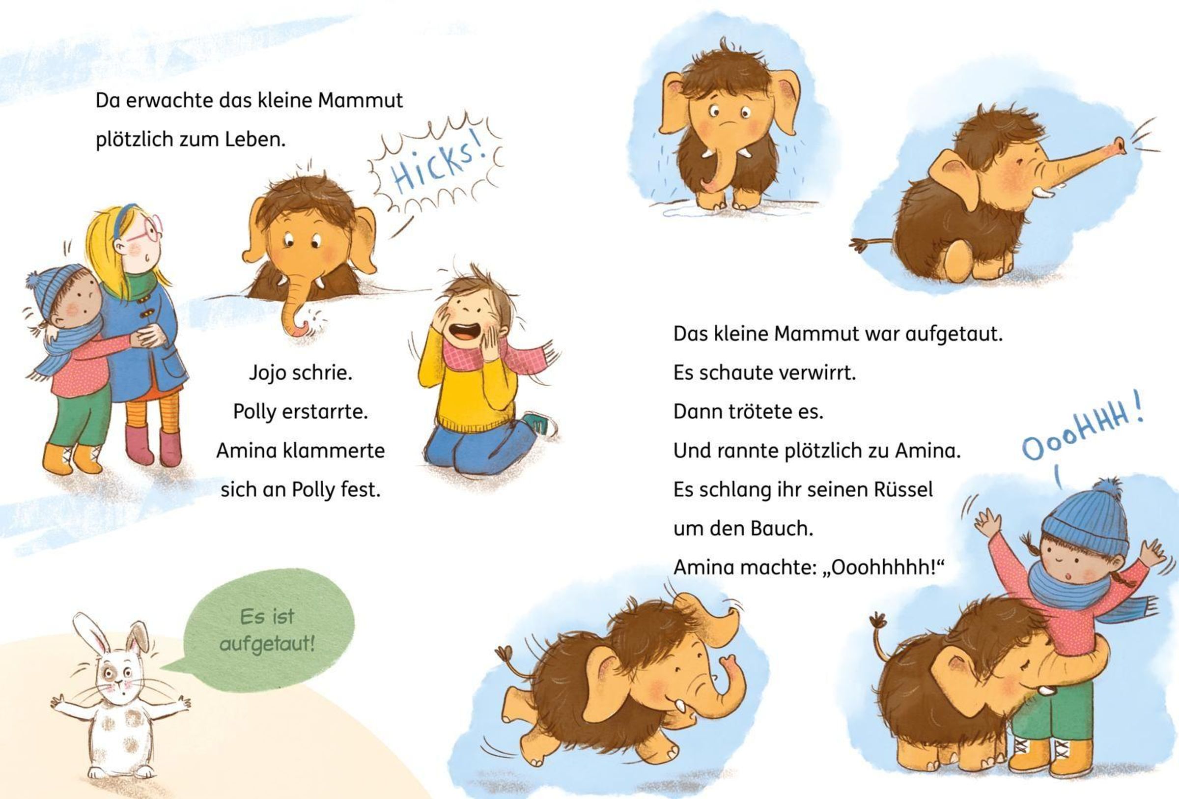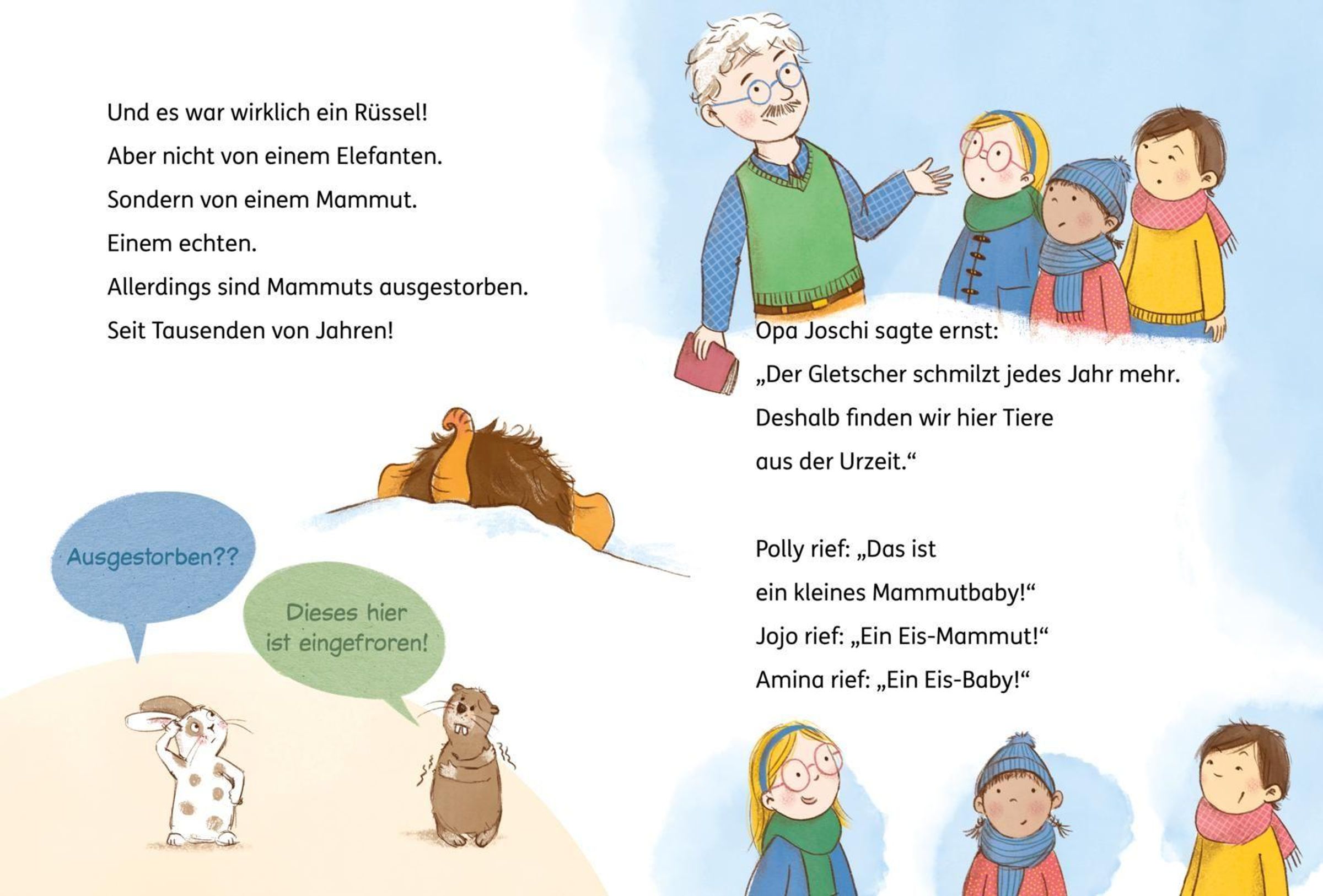 In den Bergen bei Opa Joschi wird es nie langweilig. Doch dieses Mal erleben Polly, Jojo und Amina etwas Unglaubliches: Sie entdecken im Schnee einen Rüssel! Und bevor sie es sich versehen, steht das aufgetaute und quicklebendige Mammutbaby Mo vor ihnen! Schnell wird klar: Ein Mammut als Haustier ist keine einfache Sache. Mo ist riesig, verfressen und gar nicht stubenrein. Außerdem gibt es da noch die neugierige Vivi Raal, die unbedingt wissen und verbreiten will, was die Kinder verstecken. Jetzt müssen die drei einfallsreich sein, um Mo ein artgerechtes Zuhause zu suchen, das ihn schützt.