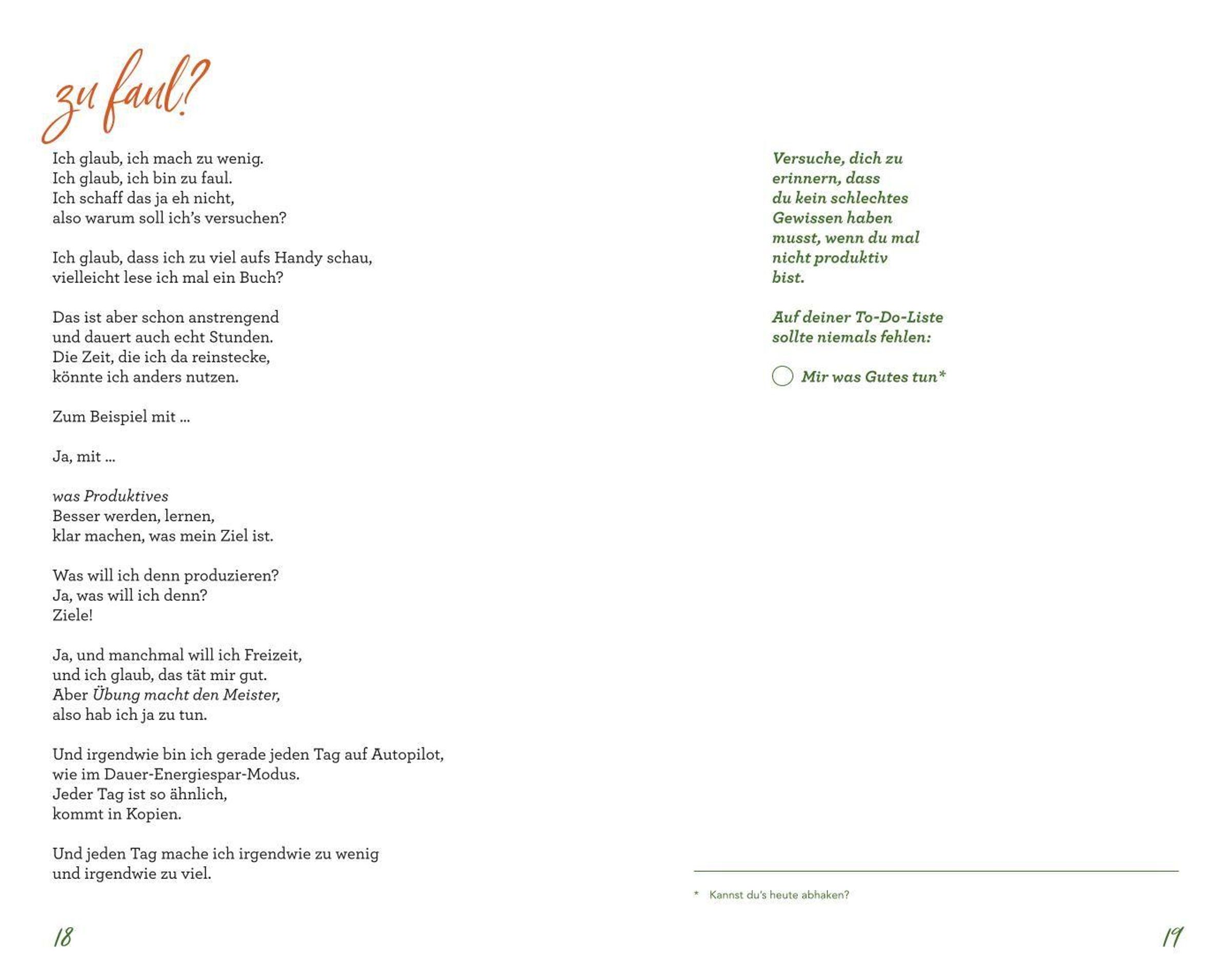 Gedichte, die dich alles fühlen lassen: Diese Lyrik-Sammlung schenkt dir den Raum, deine Gefühle zu sehen, zu hören und anzunehmen. Mit feinfühligen Gedichten und ehrlichen Worten erkundet Maja Elisabeth Wulff (@majaspoesie, 100.000 Follower) die bittersüßen Facetten des Erwachsenwerdens, die Verstrickungen der Liebe, die Suche nach Identität und unsere Mental-Health-Herausforderungen. Ihre Texte sprechen Wahrheiten aus, die man sich selbst vielleicht noch nicht eingestehen kann und erinnern daran, dass alle Gefühle erlaubt sind. Und dass es irgendwann leichter wird. Vielleicht sogar wunderschön. Nach jedem Gedicht wartet eine Frage, die zum Nachdenken anstößt und Türen zur eigenen Gedankenwelt öffnet.