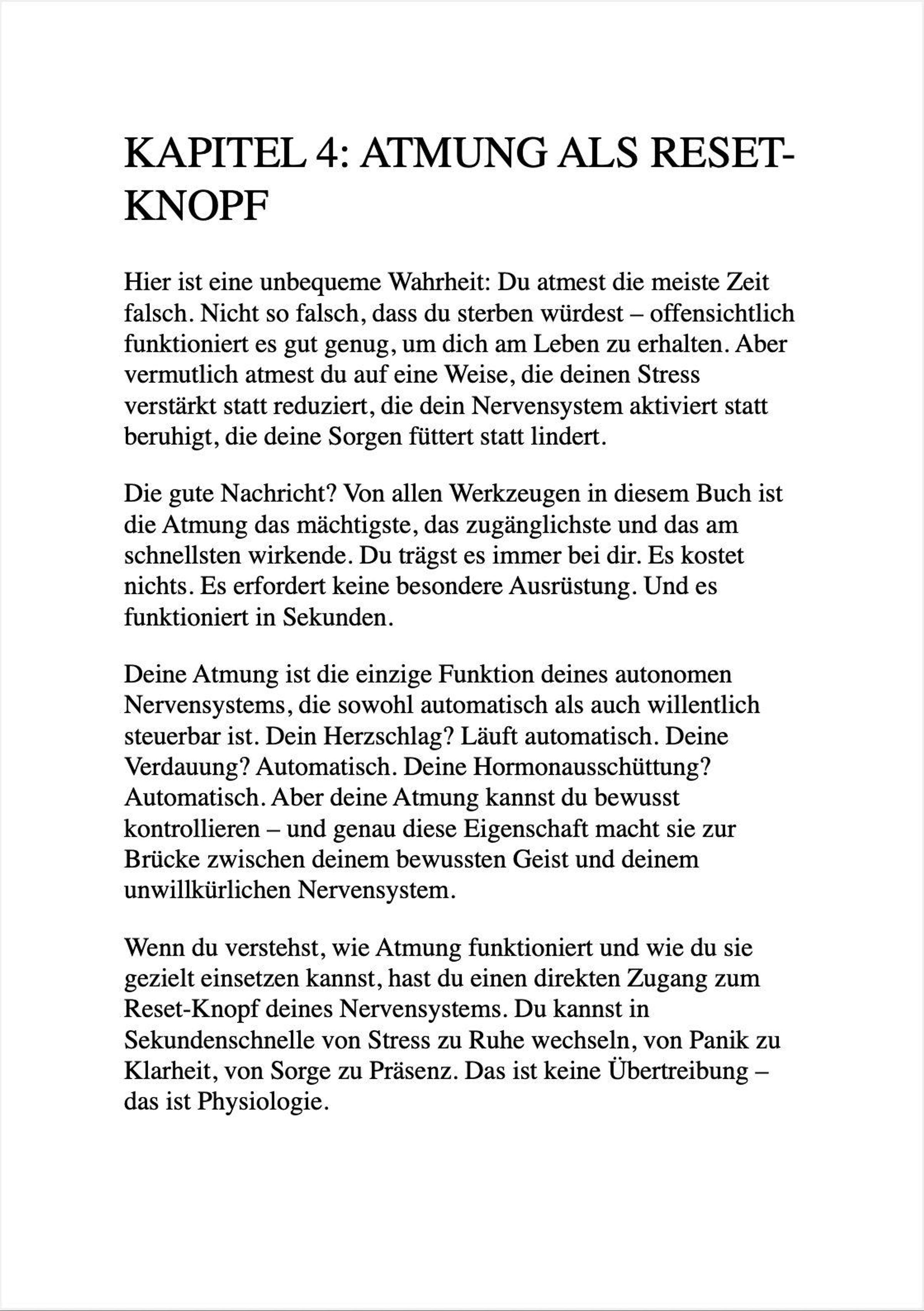 Basierend auf aktuellen neurowissenschaftlichen Erkenntnissen und bewährten Achtsamkeitsmethoden verbindet dieses Buch zwei Welten: schnell wirksame Neurohacks, die dein Nervensystem in akuten Stressmomenten beruhigen, und nachhaltige Achtsamkeitspraxis, die dein Gehirn langfristig verändert. Ohne Esoterik. Ohne leere Versprechen. Dafür mit Klarheit, Tiefe und praktischer Umsetzbarkeit.