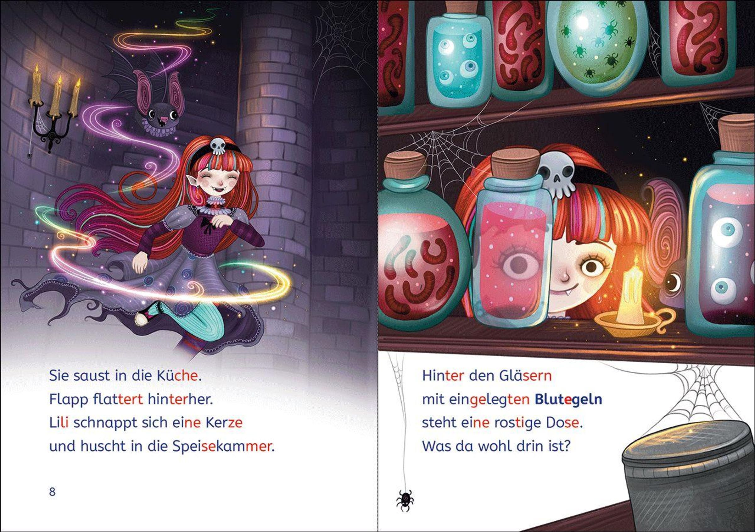 Auf der Suche nach Süßigkeiten finden Lili und ihre Fledermaus Flapp in der Speisekammer eine alte Schatzkarte. Es muss ein geheimer Schatz auf der alten Vampirburg versteckt sein! Gemeinsam machen sich die beiden auf die Suche und versuchen, unentdeckt zu bleiben. Gar nicht so leicht, wenn die ganze Familie durch die Burg wimmelt ... werden sie den Schatz finden?