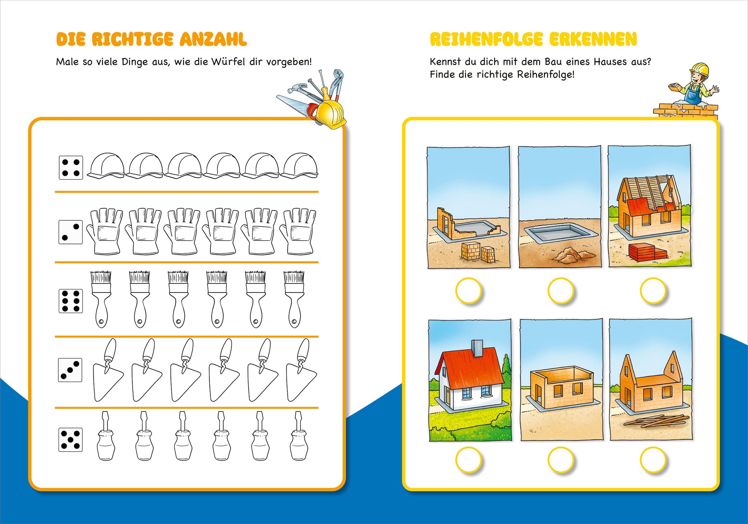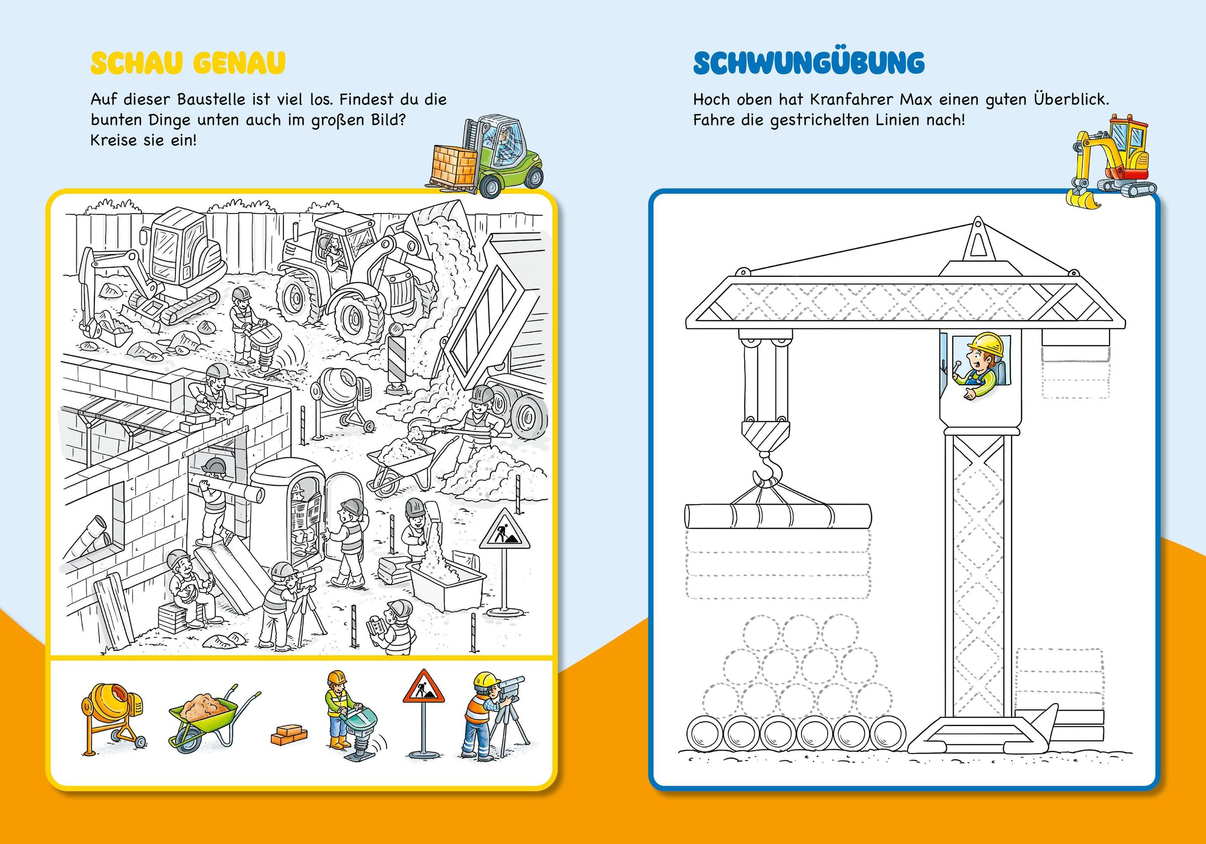 Das macht garantiert Spaß! Mit einer bunten Mischung aus verschiedenen altersgerechten Rätselarten und Ausmalbildern liefert das Heft spannende Unterhaltung rund um das Thema Baustelle. Welche Werkzeugpaare gehören zusammen? Welcher Schatten passt zum jeweiligen Bagger? Welche Unterschiede gibt es zwischen den beiden Betonmischern? Spielerisch erkunden die Kinder das Treiben auf der Baustelle. Die abwechslungsreichen Aufgaben und Ausmalbilder fördern ganz nebenbei auch die Konzentration und die Feinmotorik. Durch abgerundete Ecken und Fadenheftung ist die Handhabung des Heftes noch kinderfreundlicher. Geeignet für Kinder ab 3 Jahren.