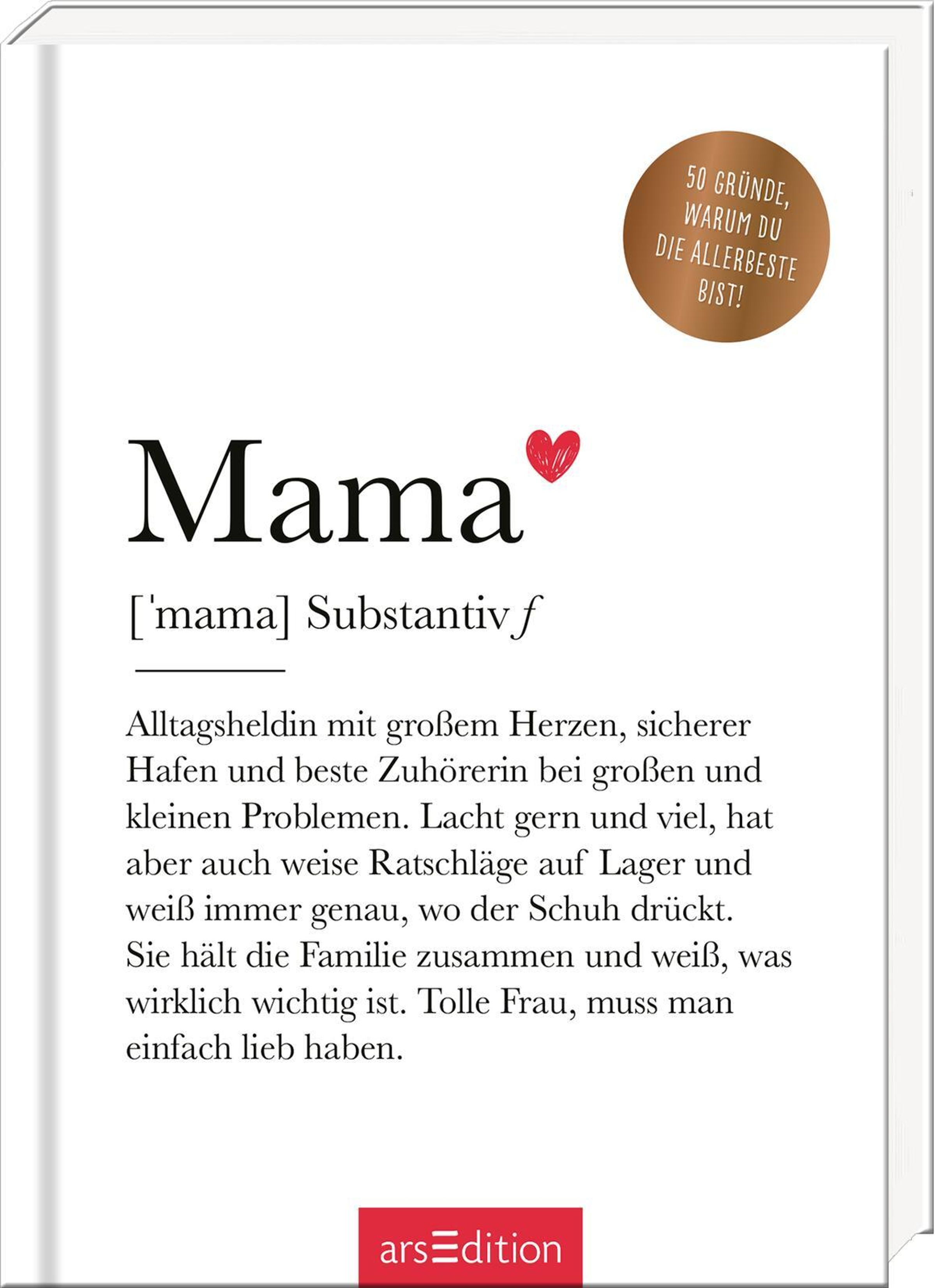 Dieses schöne Geschenk versammelt 50 Gründe, warum Mama von A bis Z einfach super ist. Zum immer wieder Hineinblättern, Schmunzeln und Sichfreuen - ein originelles Präsent für jede Mutter.