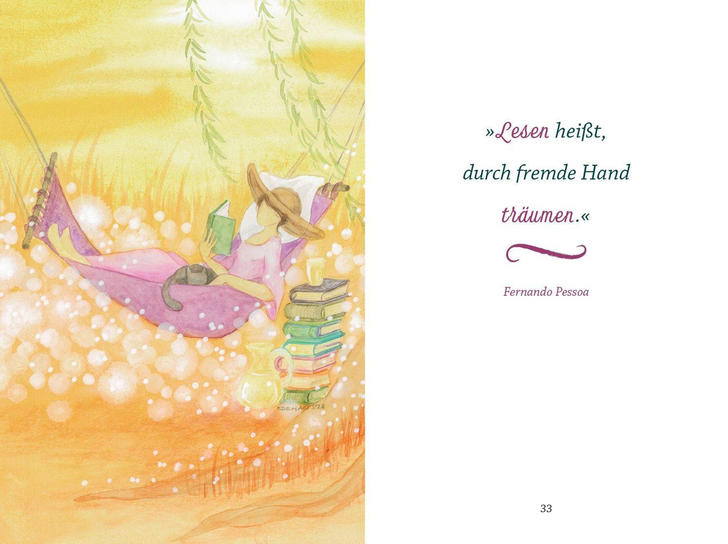 Lesen verändert Leben - still, tief und manchmal nachhaltig. Dieses besondere Geschenkbuch bringt Kunst und persönliche Erlebnisse auf berührende Weise zusammen. Die Künstlerin Katja Hogh hat sich von dem klassischen Motiv der lesenden Frau mit Katze inspirieren lassen und atmosphärische Bilder gemalt, die Ruhe, Innenschau und Tiefe ausstrahlen. Dazu erzählen 11 Autorinnen persönliche Geschichten über das Lesen: ehrlich, bewegend, voller Hoffnung und Glauben. Sie berichten davon, wie ein einzelner Satz den Lebensweg veränderte, ein Buch mitten ins Herz sprach oder das Lesen in einer Krise zur Kraftquelle wurde. Zwischen den Geschichten laden inspirierende Zitate über die Bedeutung des Lesens zum Innehalten und Nachdenken ein.