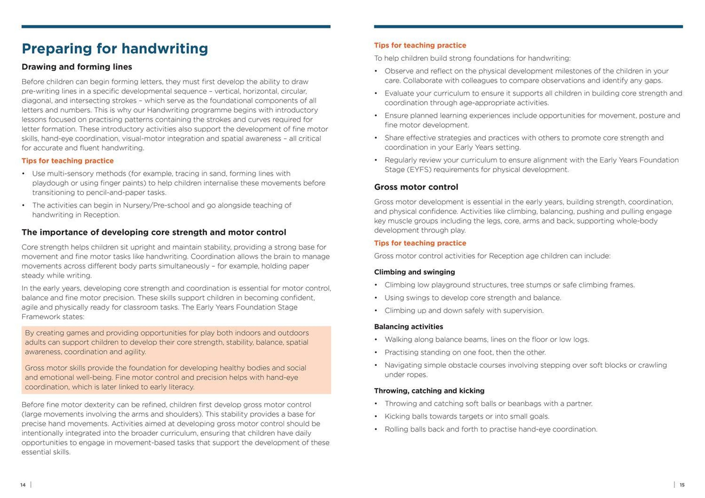 - making a strong start in Reception and developing good handwriting routines
