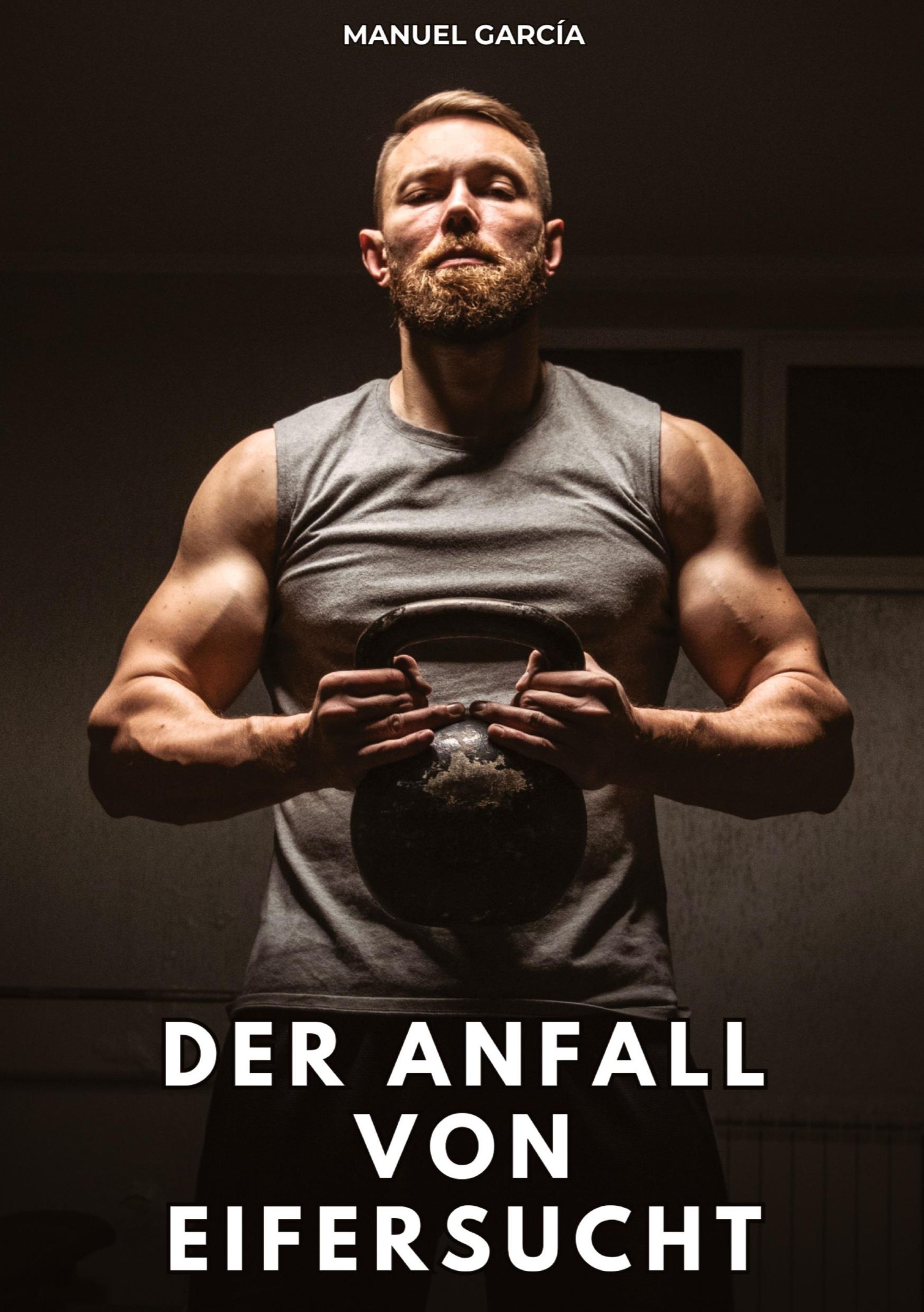 „MANUEL GARCÍA. DER ANFALL VON EIFERSUCHT.“ Ein kräftiger Mann hält eine Kettlebell mit fokussiertem Blick., Buch