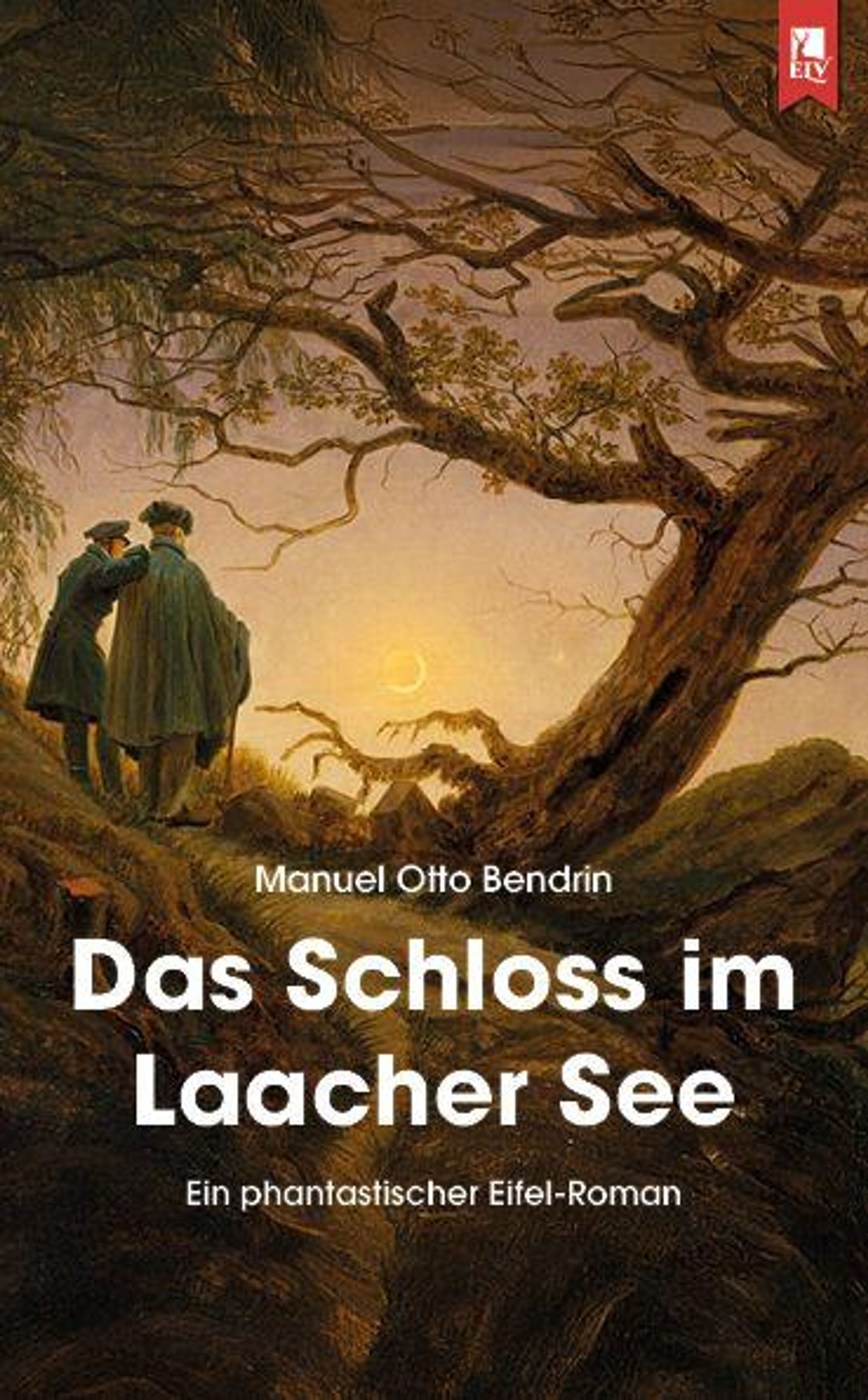 Manuel Otto Bendrin, Das Schloss im Laacher See, Ein phantastischer Eifel-Roman. Zwei Personen unter Baum im Abendlicht., Buch