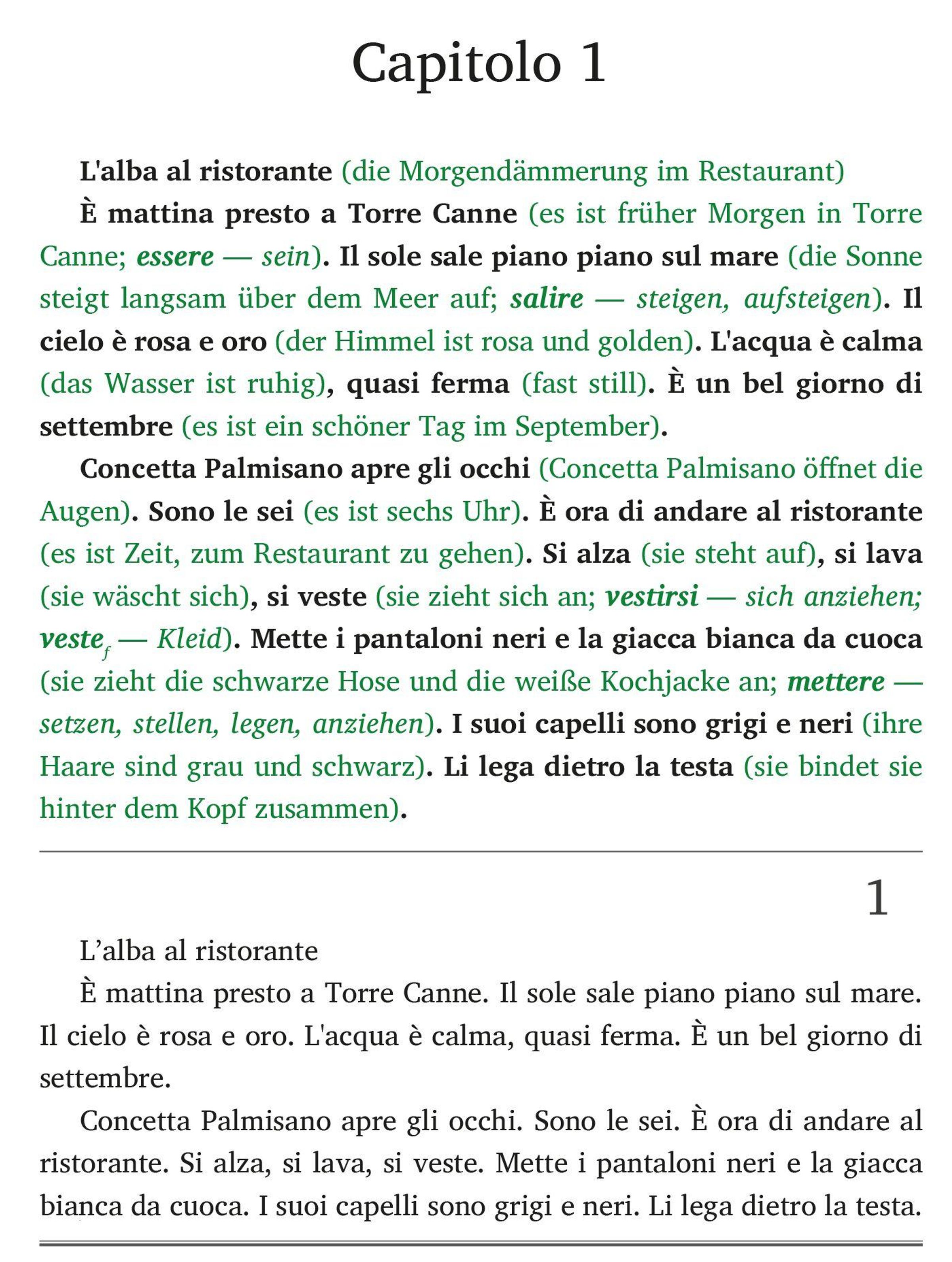 ¿ Frank-Lesemethode: Deutsche Erklärungen und Hilfen sind direkt im italienischenText integriert - ohne den Lesefluss zu unterbrechen