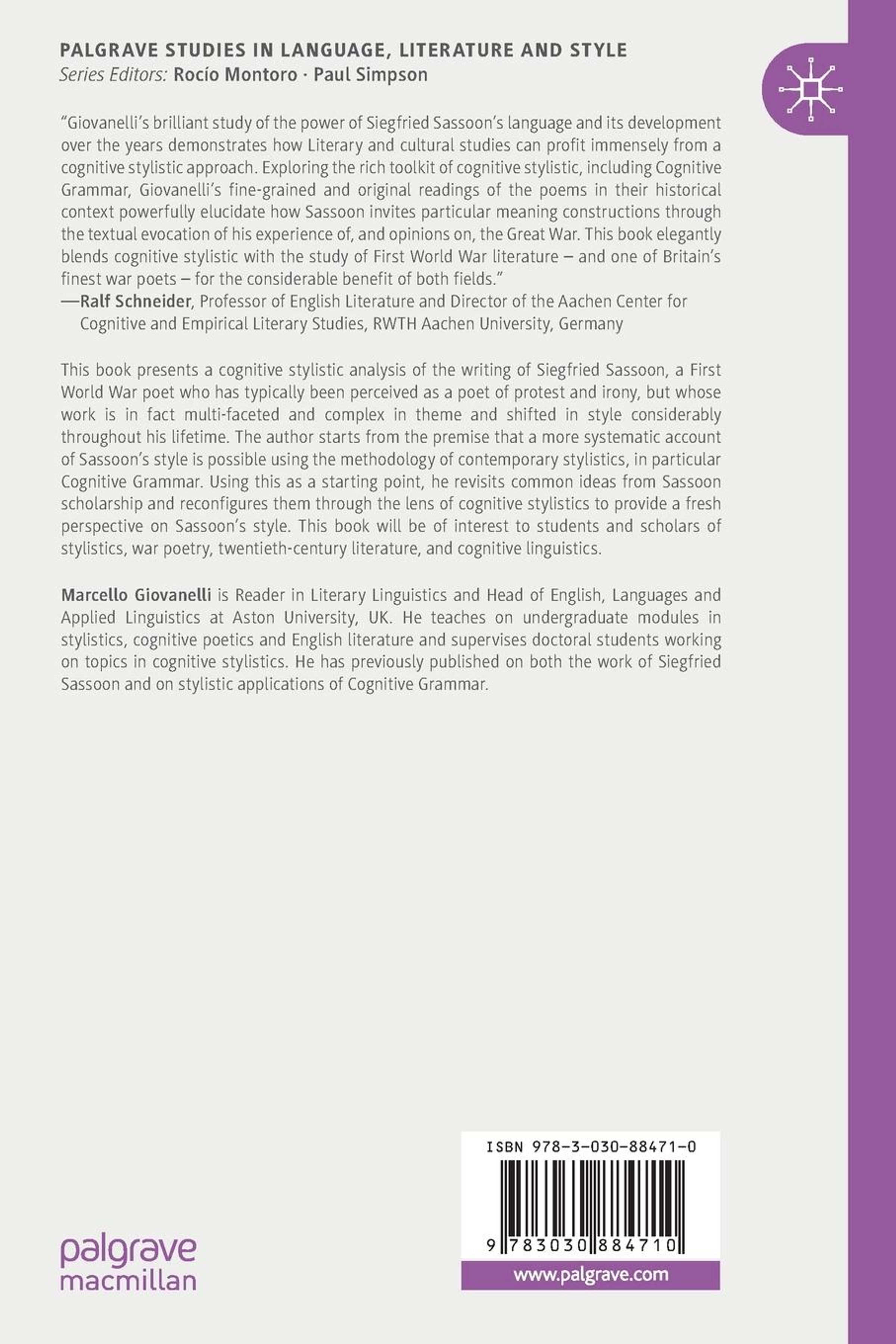 This book presents a cognitive stylistic analysis of the writing of Siegfried Sassoon, a First World War poet who has typically been perceived as a poet of protest and irony, but whose work is in fact multi-faceted and complex in theme and shifted in style considerably throughout his lifetime. The author starts from the premise that a more systematic account of Sassoons style is possible using the methodology of contemporary stylistics, in particular Cognitive Grammar. Using this as a starting point, he revisits common ideas from Sassoon scholarship and reconfigures them through the lens of cognitive stylistics to provide a fresh perspective on Sassoon's style. This book will be of interest to students and scholars of stylistics, war poetry, twentieth-century literature, and cognitive linguistics.