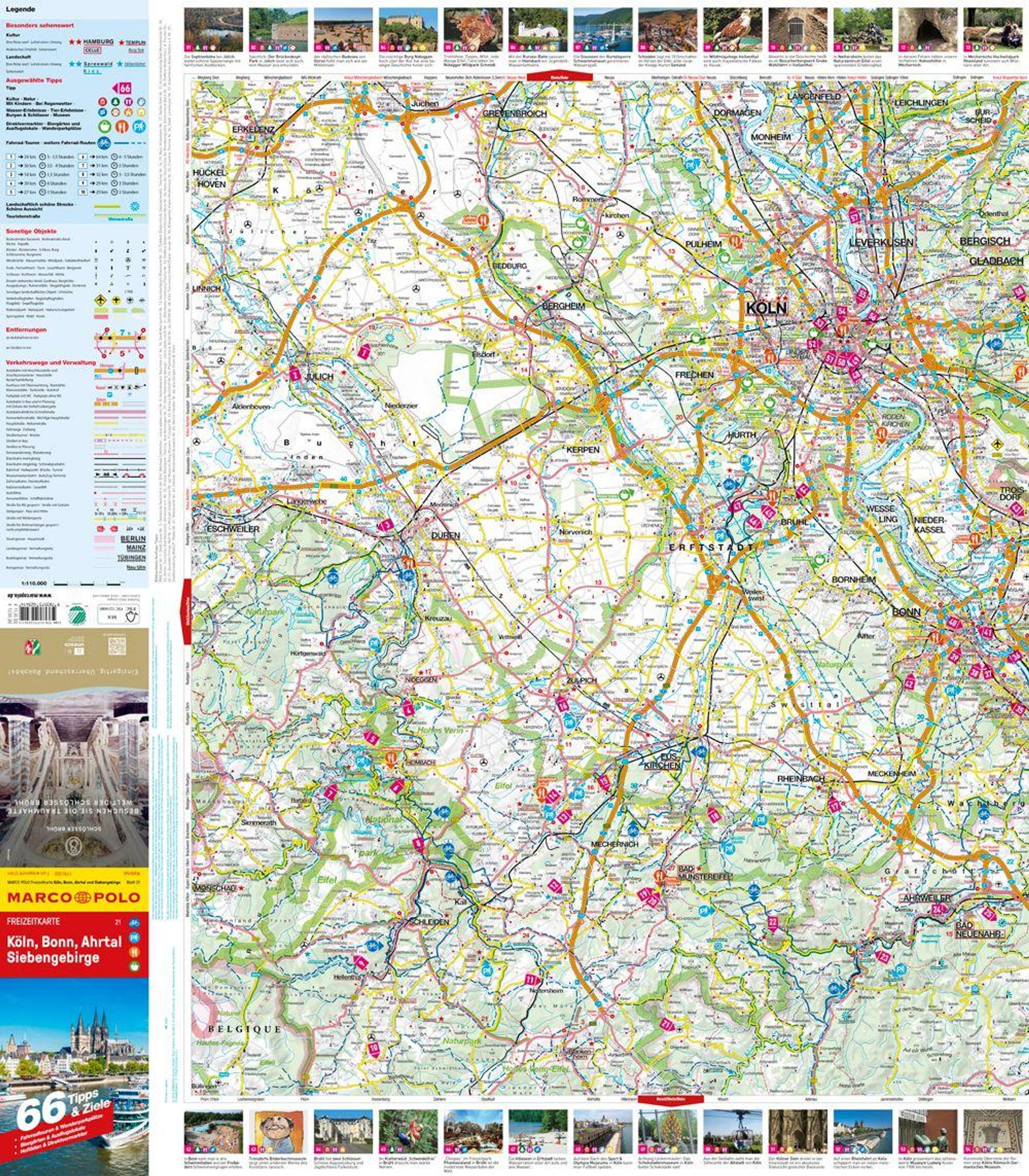 Die Marco Polo Freizeitkarte Köln, Bonn und Umgebung im Maßstab 1: 110.000 ist ideal für deine detaillierte Ausflugs- und Urlaubsplanung. Die Karte enthält nicht nur wichtige Informationen, Wegpunkte und Einrichtungen, sondern auch 66 ausgewählte Tipps und Ziele in der Region: Köln, Bonn und Umgebung. Ob Fahrradtouren, Wanderparkplätze oder gemütliche Ausflugslokale - mit dieser wetter- und reißfesten Karte bist du bestens vorbereitet für abwechslungsreiche Entdeckungen in der Region.