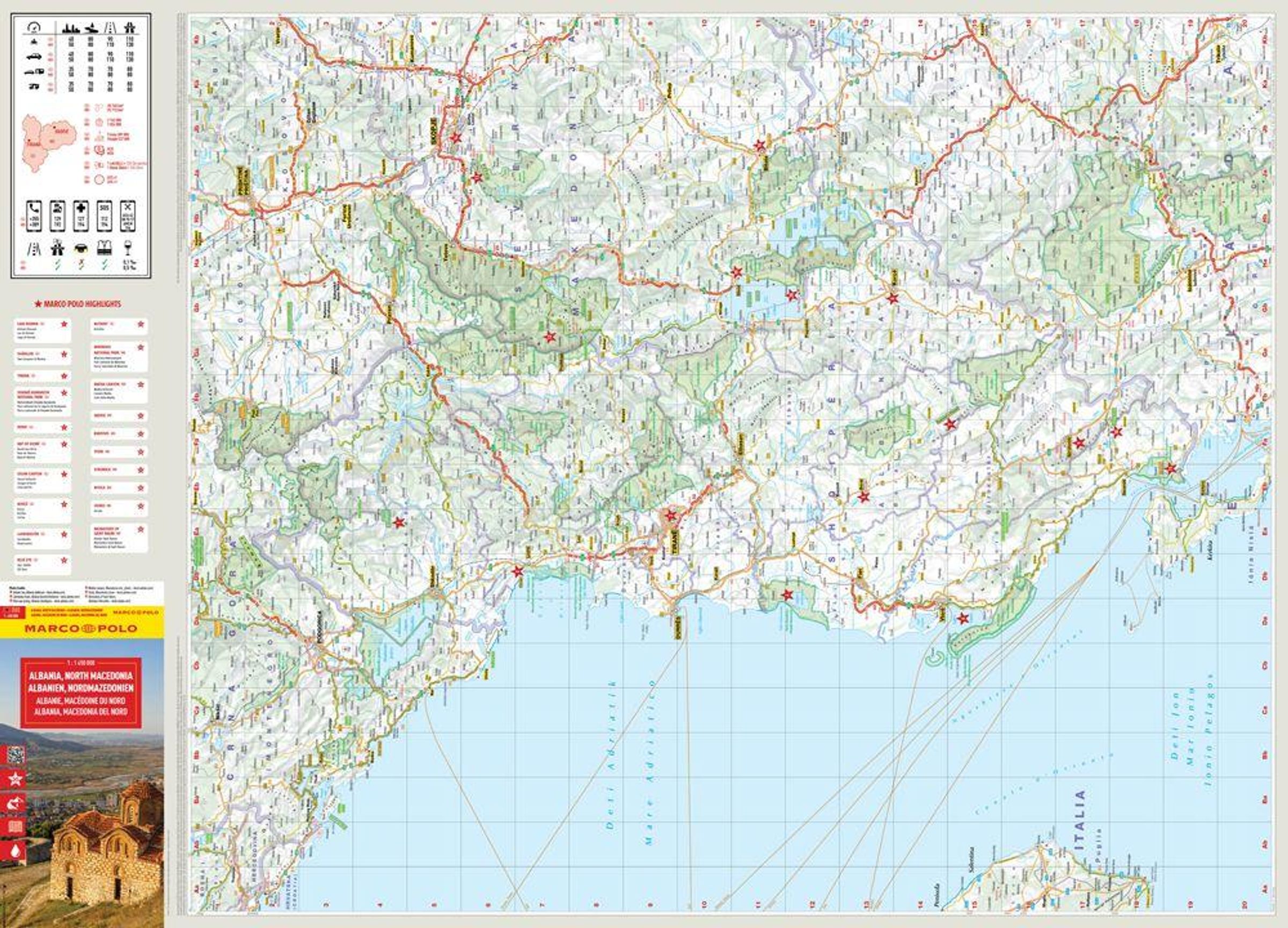 Die MARCO POLO Reisekarte Albanien, Nordmazedonien - Die Karte für Urlaubsplaner und Entdeckerinnen im Maßstab 1: 450.000. Kein Highlight mehr verpassen - die MARCO POLO Karte zeigt die bedeutendsten kulturellen und landschaftlichen Sehenswürdigkeiten auf der Karte und in einer zusätzlichen Online-Sammlung. Im schützenden Kartondeckel sind einige der interessantesten Orte mit Fotos abgebildet. Die Karte ist beidseitig bedruckt und herausnehmbar. Dank dem digitalen Register kann einfach nach Orten gesucht werden. Eine übersichtliche und detailreiche Kartografie macht es einfach, die Karte zu lesen. Auf der Rückseite des Deckels befindet sich eine Übersichtskarte mit allen Highlights. Hilfreiche Details und Verkehrsinformationen machen die Reisekarte auch zur perfekten Straßenkarte: entspannt ankommen und alles gesehen haben.