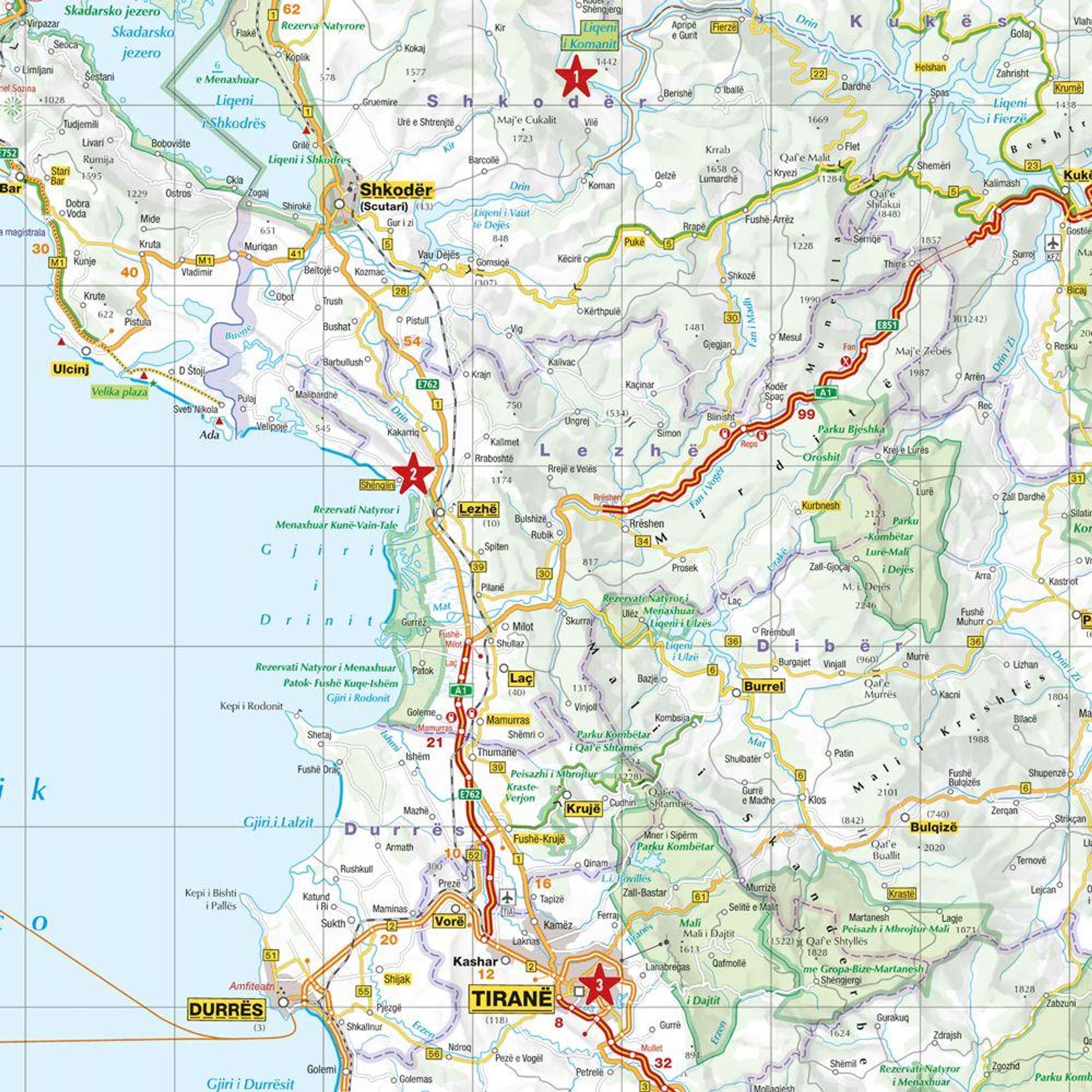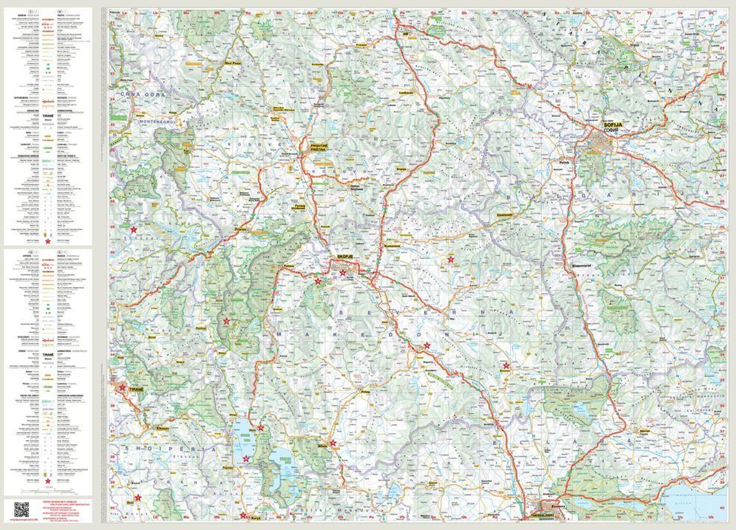 - Kosovo - Straßenkarte und Autokarte mit sehenswerten Strecken, Highlights und digitaler Erweiterung