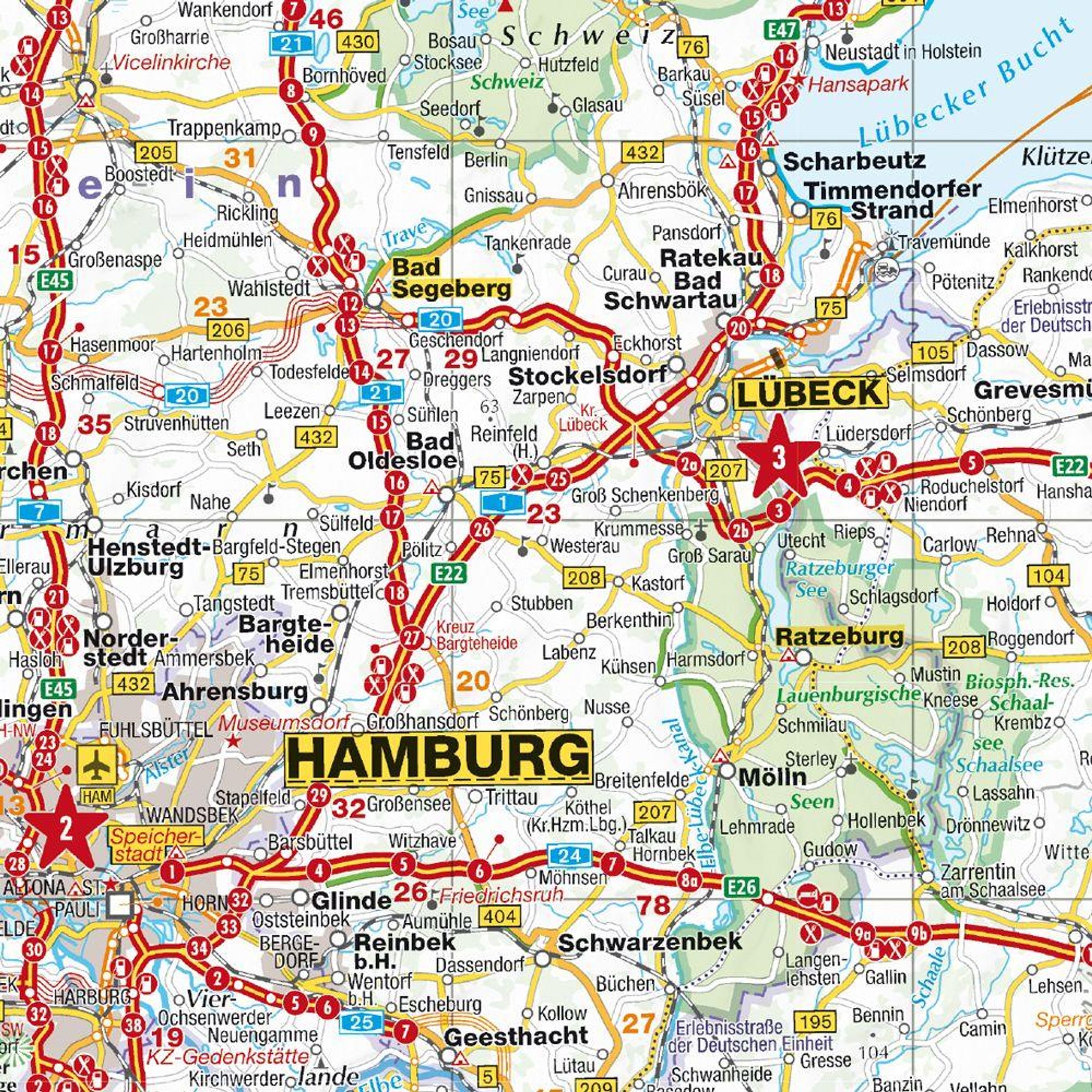 - Straßenkarte und Autokarte mit sehenswerten Strecken, Highlights und digitaler Erweiterung