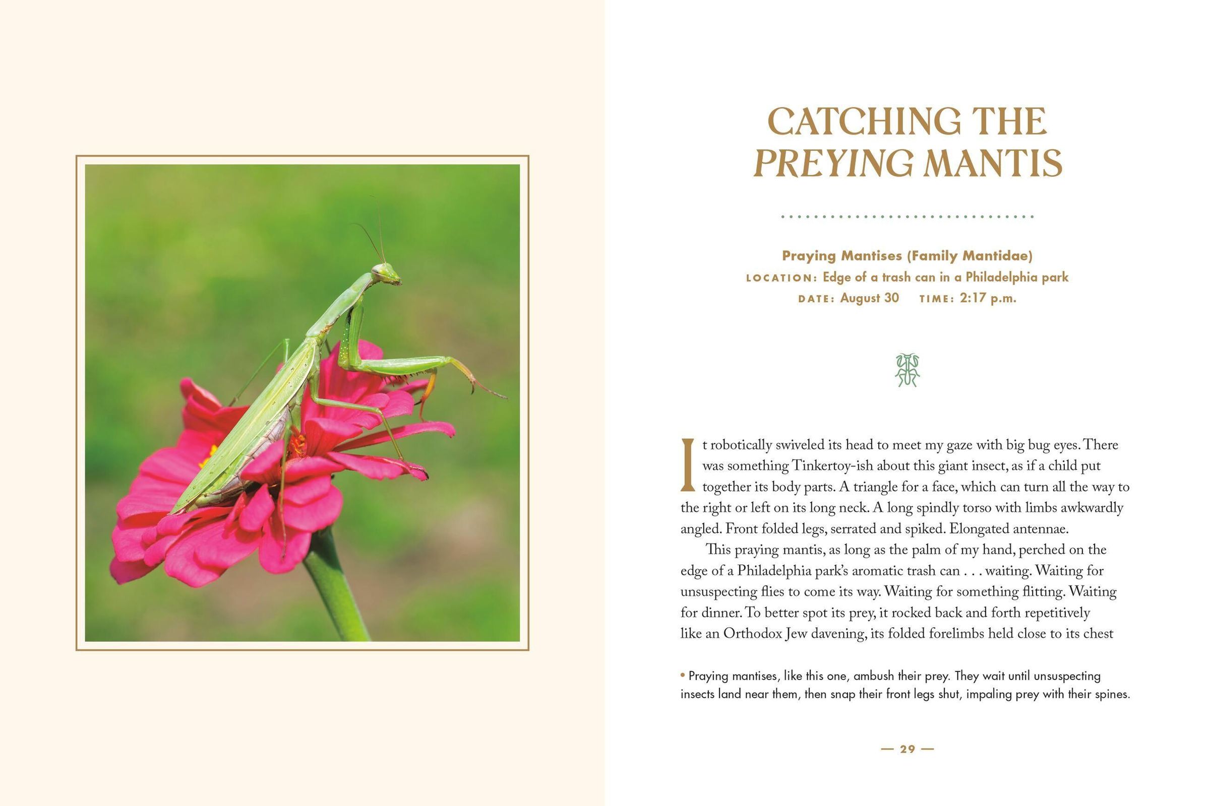 When science writer Margie Patlak was inspirited to take a quick close-up snapshot of a bee in her backyard, it was the start of a years-long obsession with cataloging and understanding the tiny creatures that were all around her. The essays in her book showcase the superpowers, alien anatomies, and striking untold behaviors and thinking abilities of bugs hidden in plain sight in backyards, parks, gardens, and even in the flowerpots that dot city courtyards and balconies. Each essay focuses on a specific bug and explores the big ideas these little bugs raise, such as whether the maternal instinct is truly instinctual, the value of a short life, whether to blend in or alter your environment, and whether you can have altruism without tribal atrocities. But what perhaps makes INSECT SAFARI the most intriguing is its reporting on the plethora of recent scientific findings revealing there's more to the inner lives and behaviors of insects than people ever thought possible. Who knew wasps use tools and recognize faces, bees play with balls and do math, ants invented farming way before we did, and even fruit flies mull over their mating choices? These findings reinforce the notion that we aren't the only intelligent beings on Earth and tap into people's curiosity about the alien life right here on their own planet.