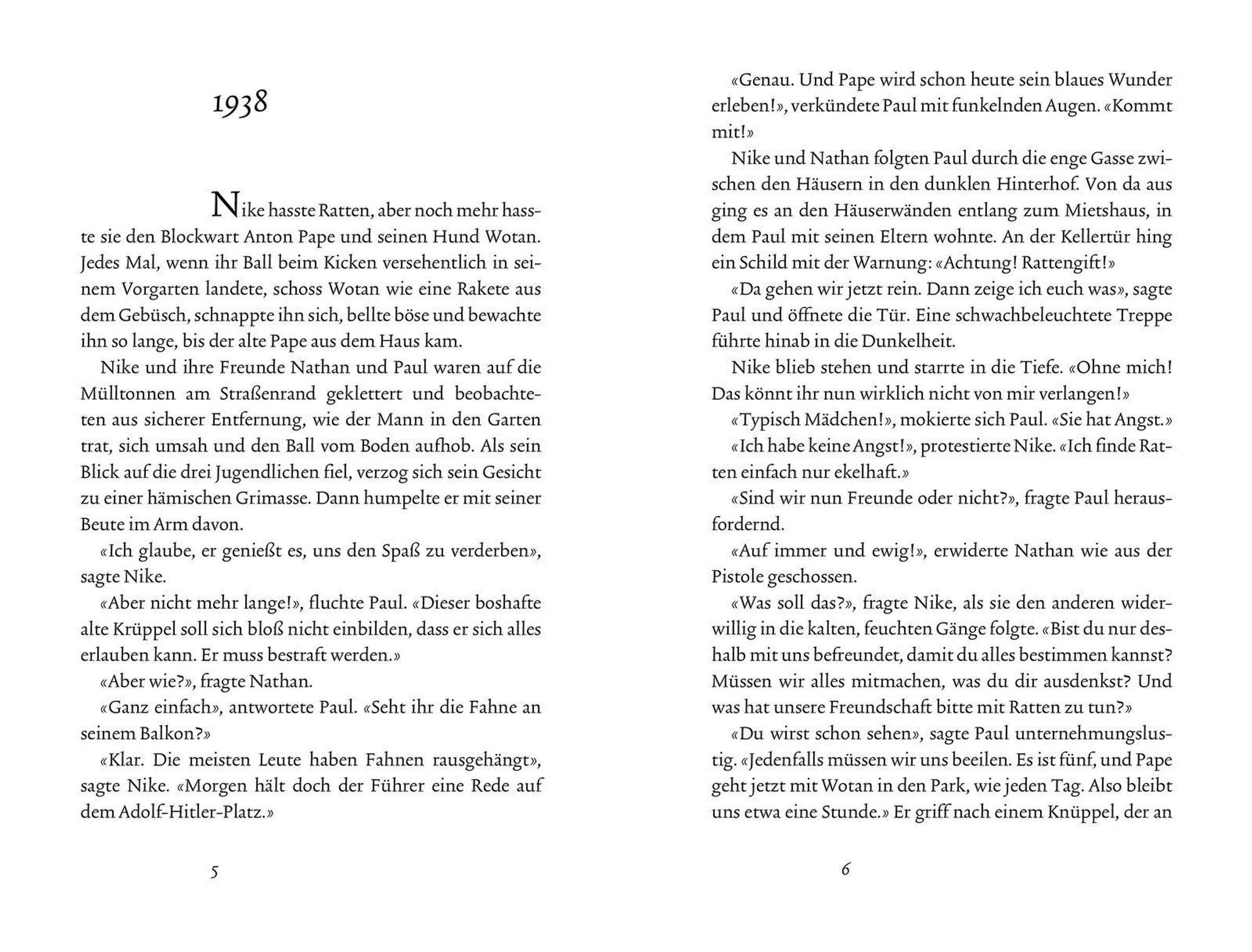 Nike und Nathan sind Deutsche. Nathan ist Jude. Der um sich greifende Terror der Nazis verbietet ihnen die Freundschaft. Ihre zarte Liebe gilt als Verbrechen. Doch Nike und Nathan haben sich geschworen, zusammen-zuhalten - auf immer und ewig ...