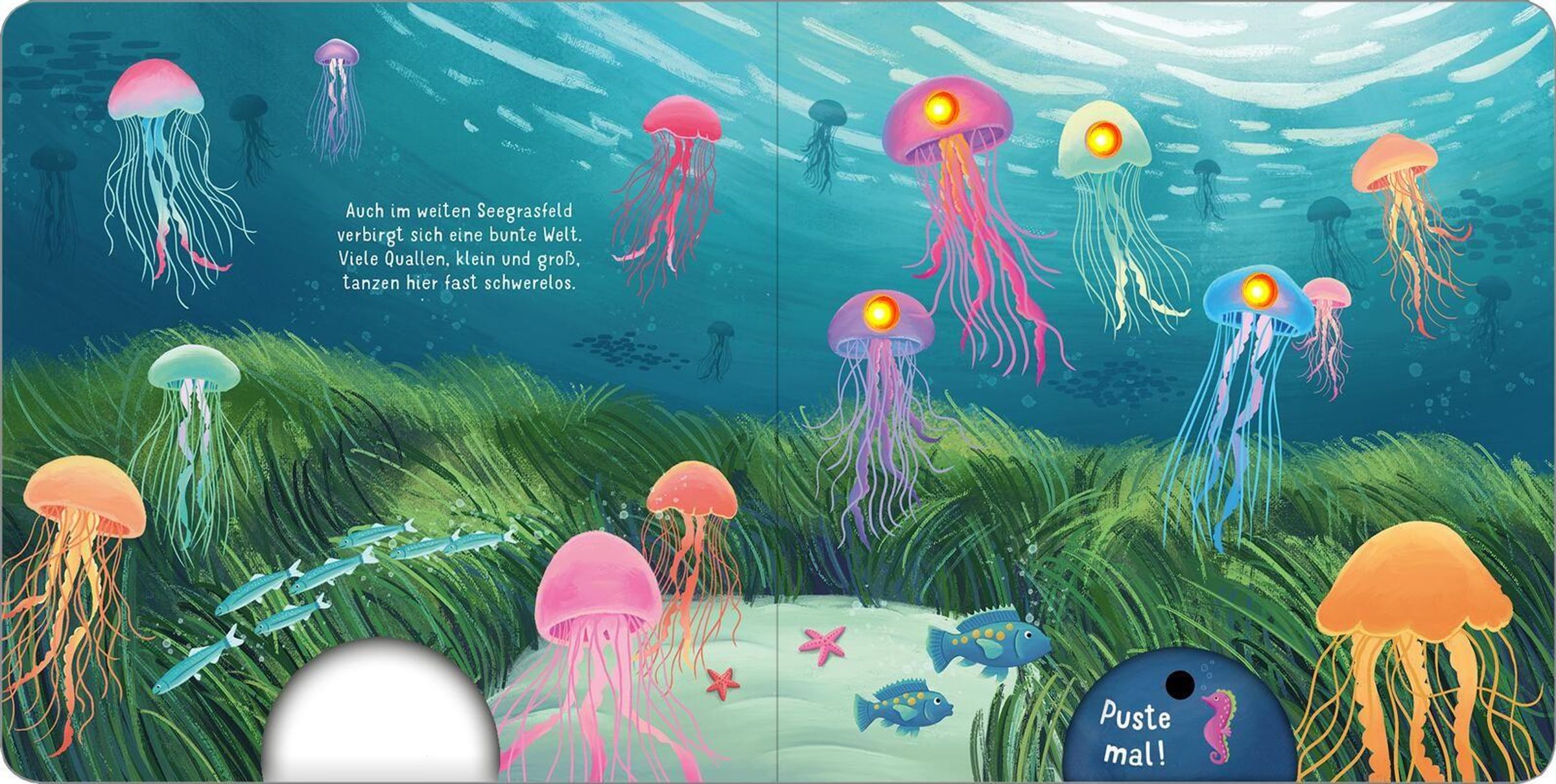 Das interaktive Kleinkindbuch zum Thema Meer bietet magischen Pustespaß, der kleine Augen funkeln lässt. Durch das Pusten auf den im Buch integrierten Sensor beginnen auf jeder Seite 4 LED-Lichter zu leuchten. Spielerisch wird so die Mundmotorik und Konzentration trainiert. Ein zauberhafter Buchspaß mit atmosphärischen Illustrationen für Kleinkinder ab 18 Monaten.