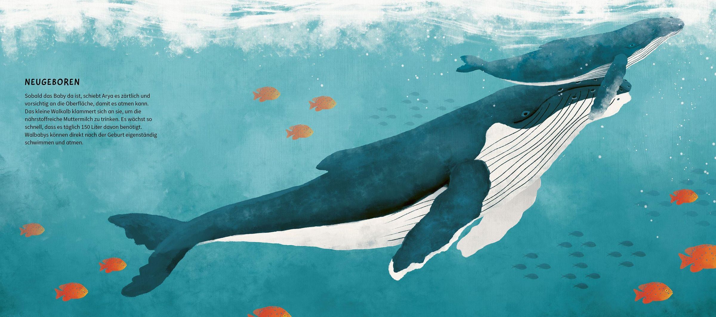 Ein farbig illustriertes Kinderbuch über majestätische Buckelwale