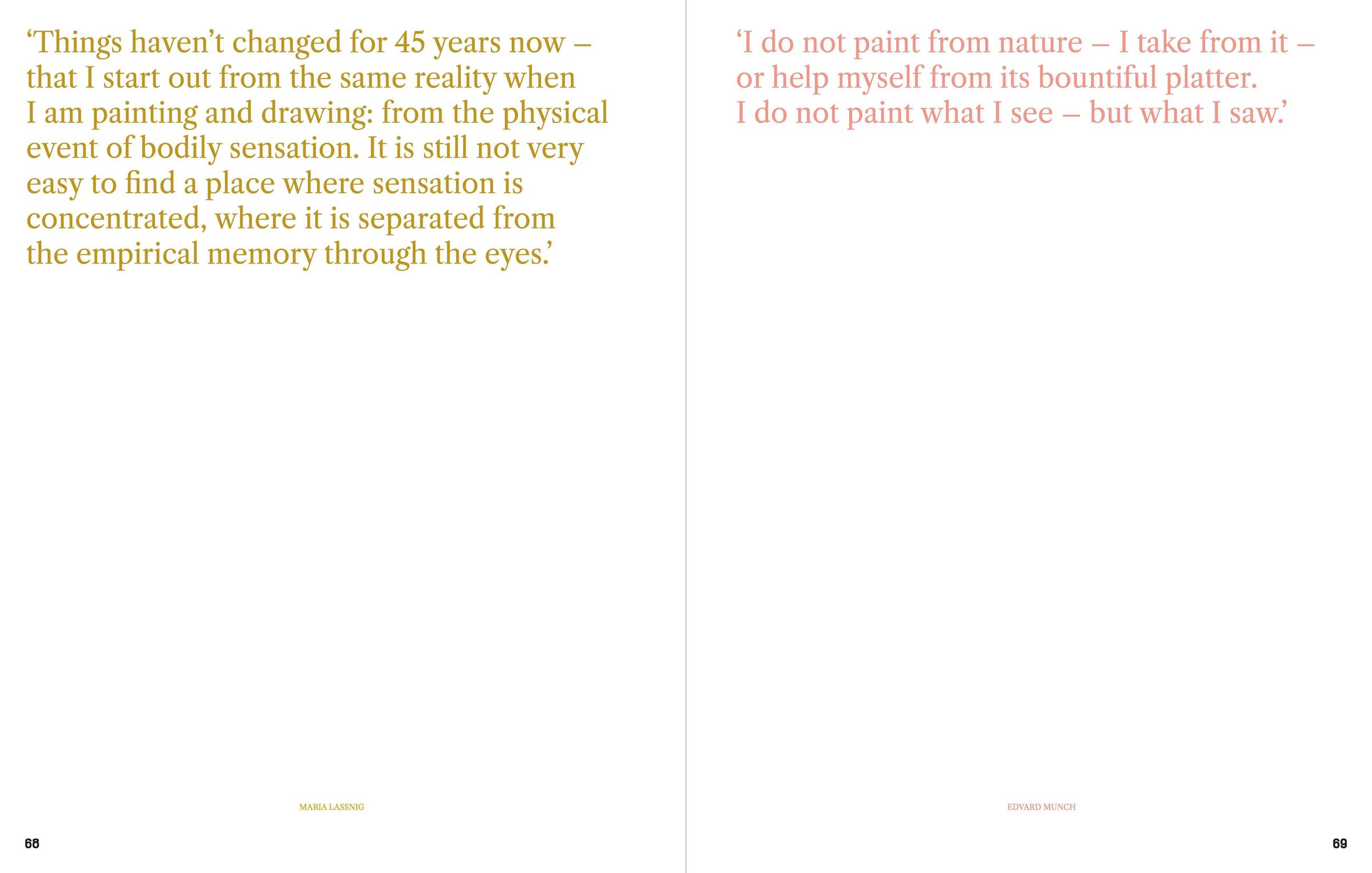 The Austrian artist Maria Lassnig (b. Kappel am Krappfeld, 1919; d. Vienna, 2014) and the Norwegian painter Edvard Munch (b. Løten, 1863; d. Ekely, Oslo, 1944) were equals in the radical and unsparing scrutiny of their own selves. Each also had a singular way of handling paint as a means of their art and powerful medium for expression of emotions like grief, love, loneliness, trepidation, joy, pain, or also for physical levels of perception. The richly illustrated volume accompanies the grand double exhibition of these two exceptional artists' oeuvres. Released on occasion of the exhibitions at Hamburger Kunsthalle and Kunsthaus Zürich, it presents intimate insights into the artists' works, highlighting parallels as well as differences between what are arguably two of the most celebrated oeuvres in more recent art history. With writings by Andreas Eriksson, Sandra Gianfreda, Sheela Gowda, Johanna Hornauer, Hans Dieter Huber, Siri Hustvedt, Brigitte Kölle, Maria Lassnig, Edvard Munch, Johanna Ortner, Ulrike Ottinger, Ashley Hans Scheirl, Luc Tuymans, and others.