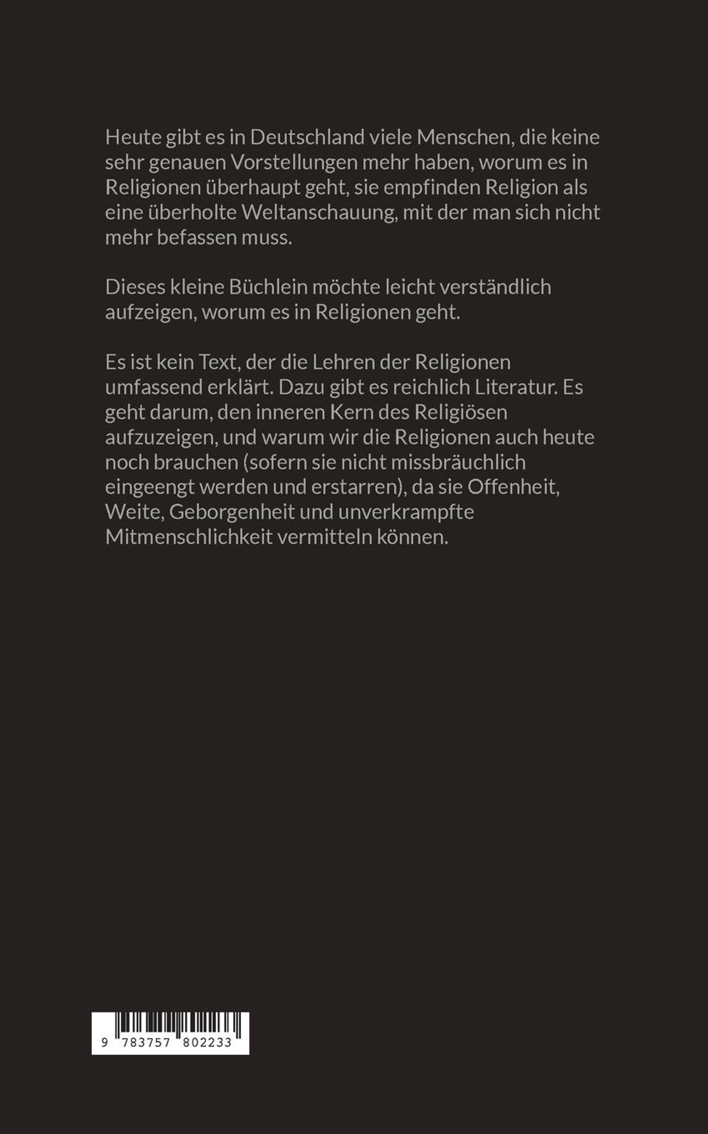 Dieses kleine Büchlein möchte leicht verständlich aufzeigen, worum es in Religionen geht.