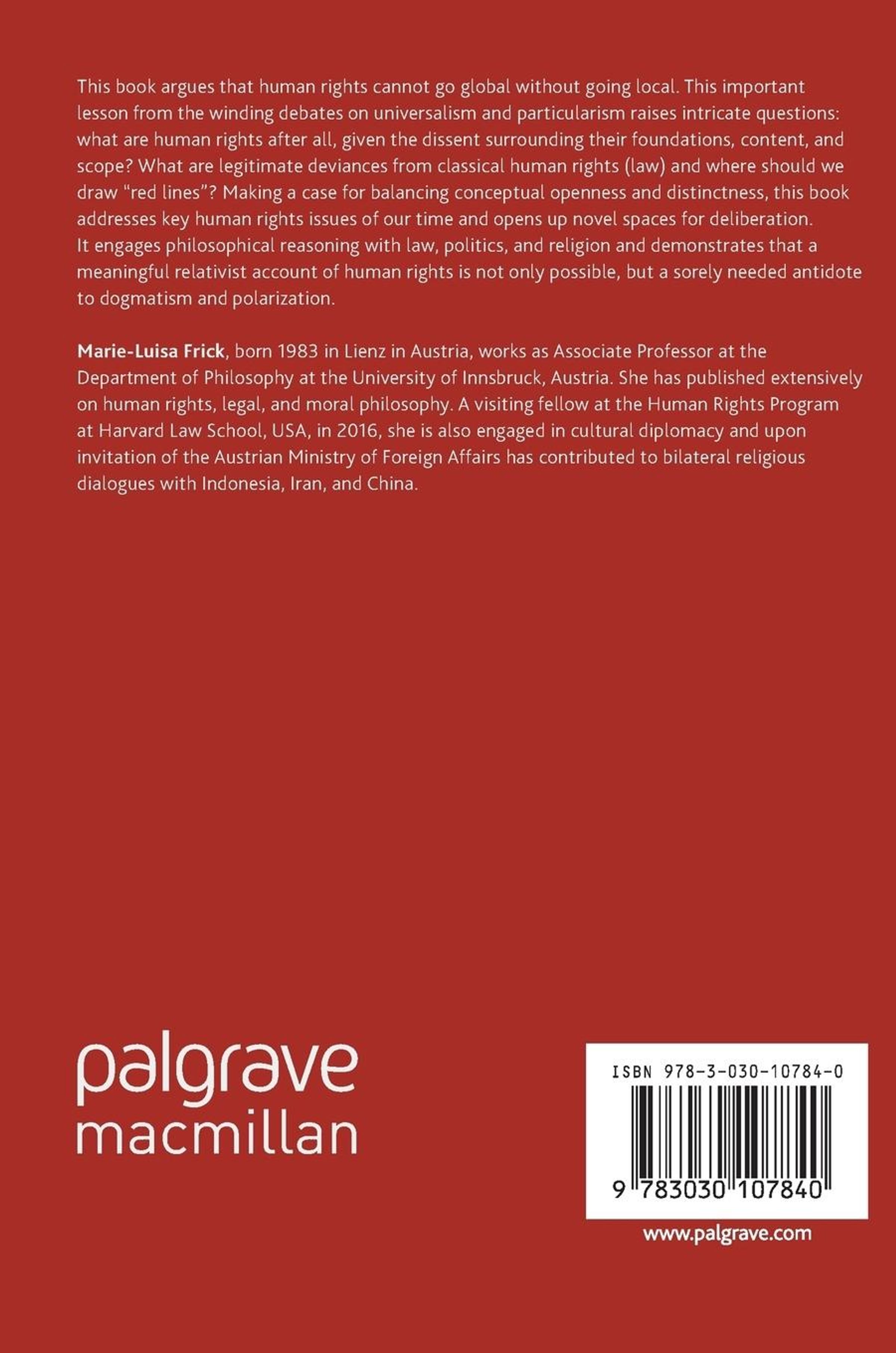Making a case for balancing conceptual openness and distinctness, this book addresses the key human rights issues of our time and opens up novel spaces for deliberation. It engages philosophical reasoning with law, politics, and religion and demonstrates that a meaningful relativist account of human rights is not only possible, but a sorely needed antidote to dogmatism and polarization.