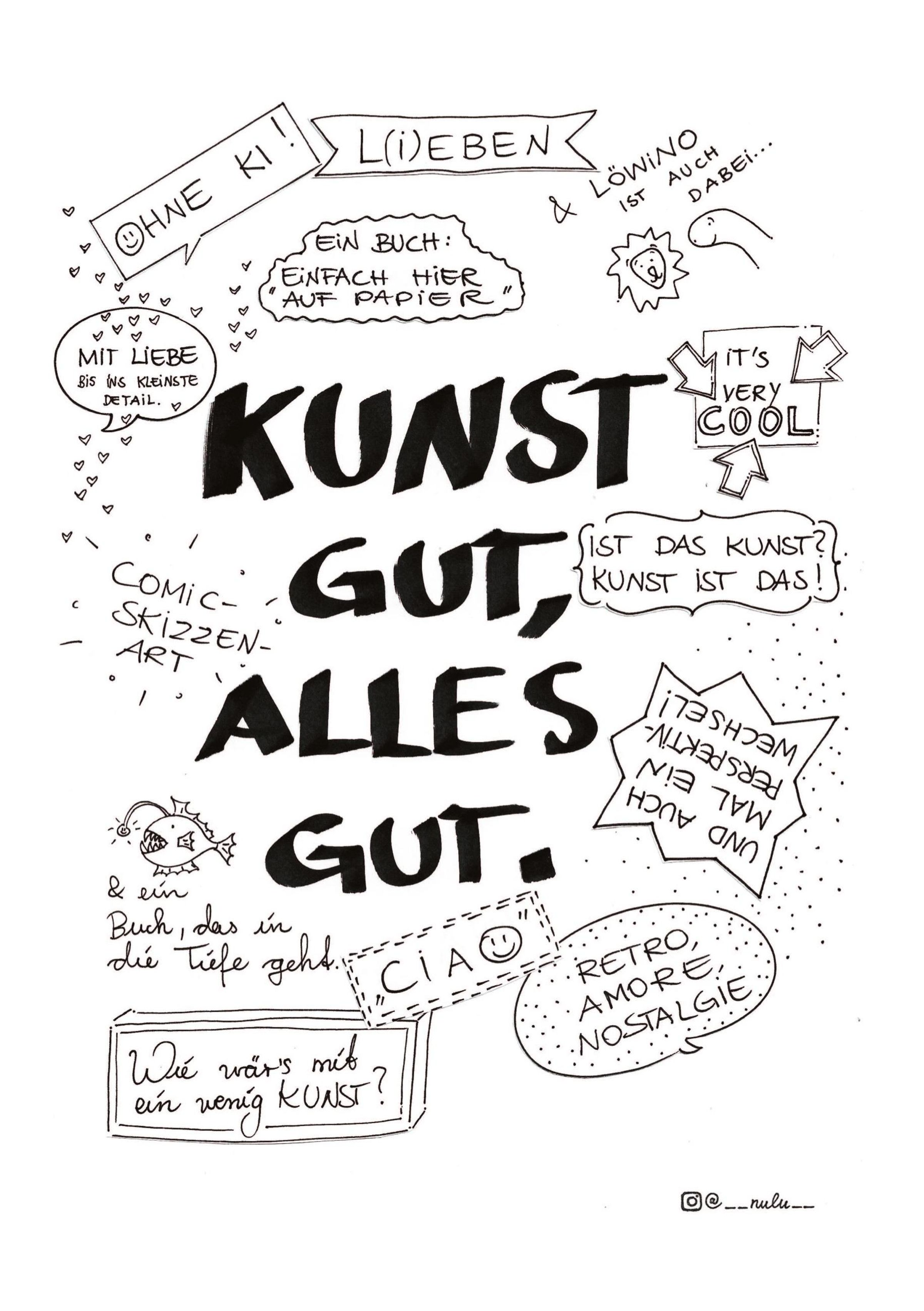Künstliche Intelligenz ist in der heutigen schnelllebigen Zeit leider selbstverständlich geworden. Doch dieses Buch ist: "Einfach hier auf Papier". Im Comic- und Skizzen-Stil gestaltet: Ein Hauch von Retro, Amore und Nostalgie - völlig frei interpretiert. Sprüche und Zeichnungen, die das Nachdenken, die Motivation und die Kreativität anspornen. Tiefgründige Kunst. Schau selbst und lass dich überraschen.