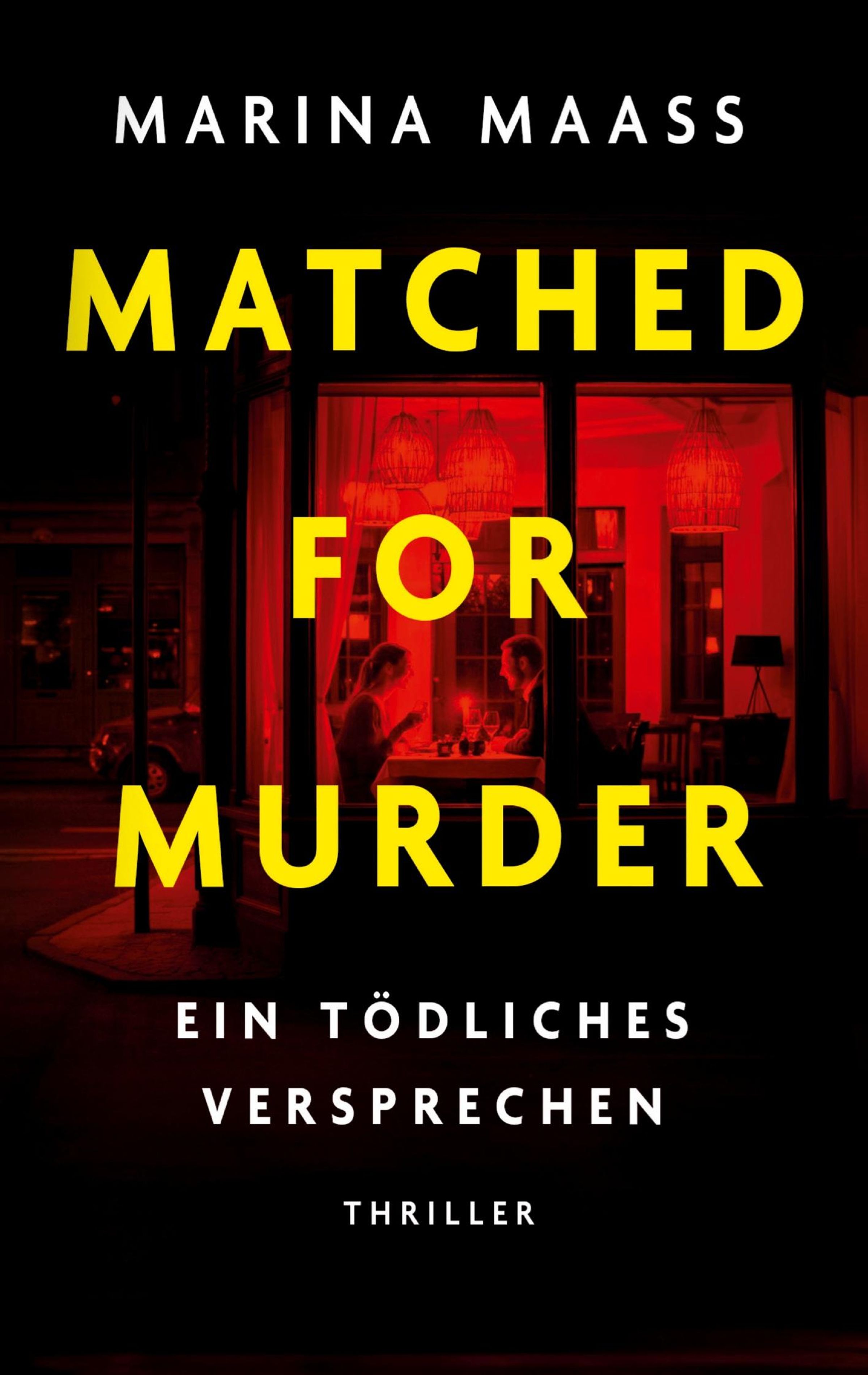 "MARINA MAASS MATCHED FOR MURDER EIN TÖDLICHES VERSPRECHEN THRILLER" Zwei Personen an einem rot beleuchteten Tisch., Buch