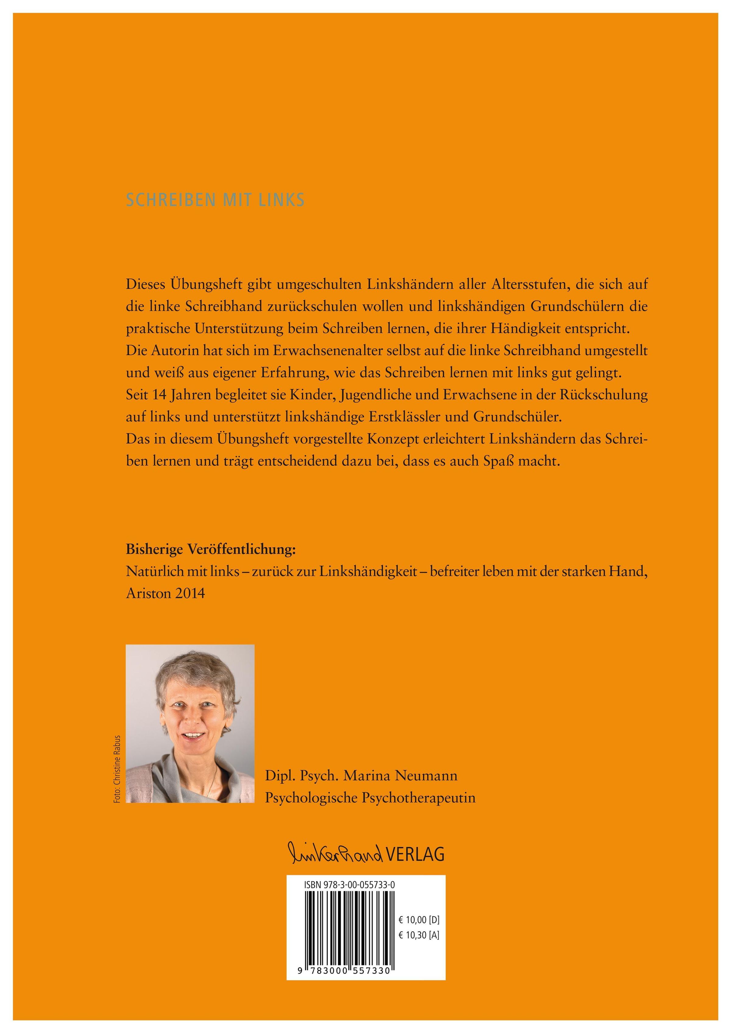 Dieses Schreiblernheft macht linkshändigen Grundschülern und umgeschulten Linkshändern aller Altersstufen, die sich auf die linke Schreibhand zurückschulen wollen, das Schreiben lernen leichter und vergnüglicher. Viele Forscher gehen davon aus, dass 50 % aller Menschen Linkshänder sind. In der Grundschule sind Linkshänder die Minderheit, die am wenigsten beachtet und beim Schreiben lernen "links" liegen gelassen wird. Für diese Zielgruppe ist dieses Schreiblernheft entwickelt worden. Es ist ebenfalls hervorragend geeignet für erwachsene Linkshänder, die als Kind auf "rechts" umerzogen worden sind und sich auf die linke Schreibhand zurückschulen wollen. Das Heft ist weltweit einzigartig und rechtlich geschützt. Es berücksichtigt die Andersartigkeit des linkshändigen Schreibens, denn die Anpassungsleistung von Linkshändern, wenn sie von links nach rechts schreiben, ist enorm. Die meisten von ihnen würden nämlich - wenn sie dürften - in Spiegelschrift schreiben. Die Autorin, Diplompsychologin, arbeitet nach eigener erfolgreicher Rückschulung auf die linke Hand seit 2002 in eigener Praxis mit umerzogenen linkshändigen Kindern, Jugendlichen und Erwachsenen und unterstützt linkshändige Grundschüler beim Schreiben lernen.