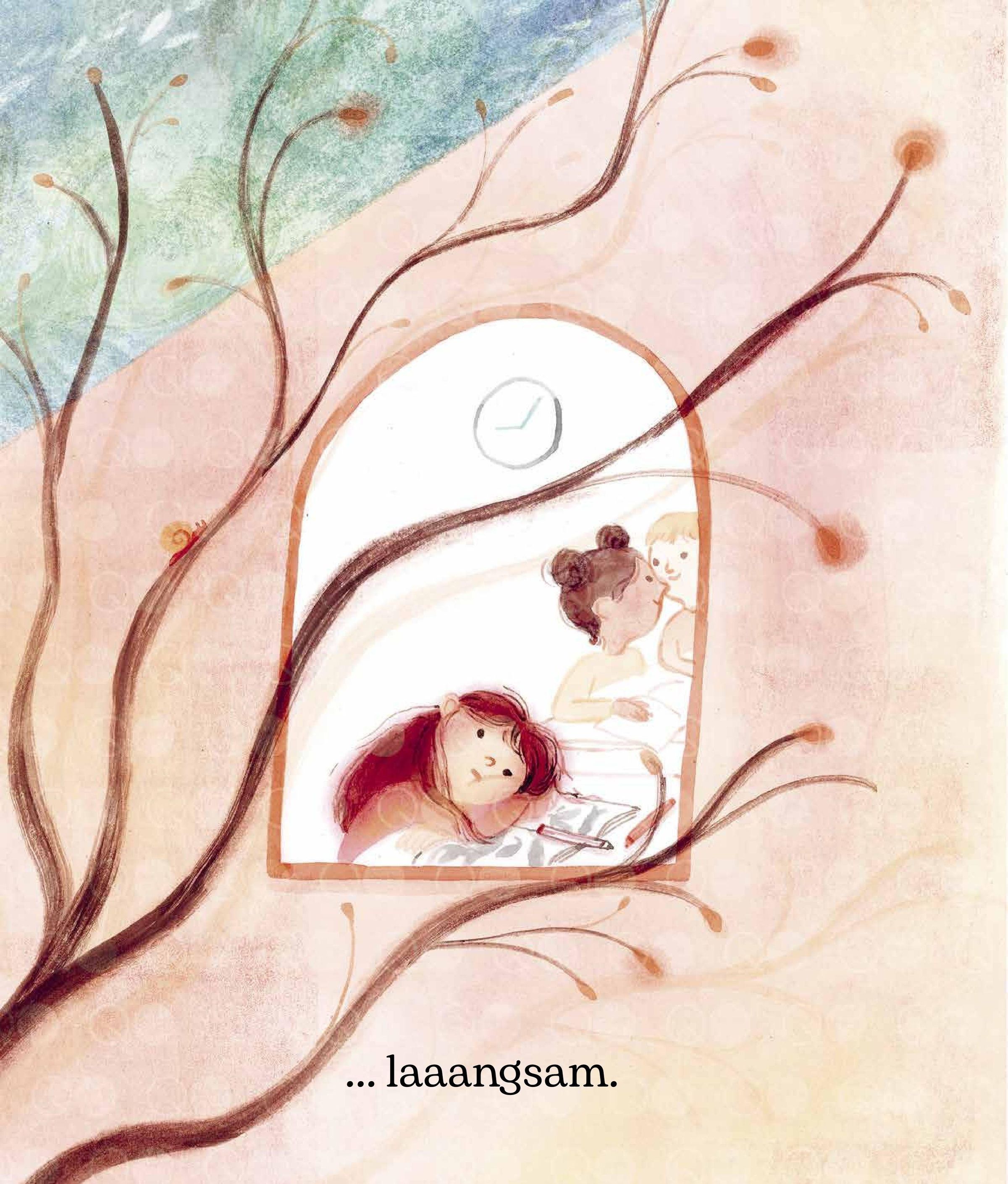 In diesem Buch geht es um ein kleines Mädchen, das lernt, geduldig zu sein. Als sie langsam die Augen für die Wunder der Natur öffnet, entdeckt sie, dass manche Dinge das Warten wirklich wert sind. Tiere erwachen aus dem Winterschlaf, Samen blühen zu Blumen, Bäume werden zu Wäldern und Schnecken hinterlassen wunderschöne, glitzernde Spuren.